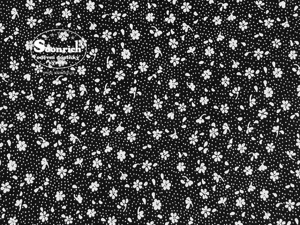 látka na patchwork bílé kytičky na černé , materiál: 100% bavlna, rozměr: 100 x 20 cm, vzor: květiny, kytky, kytičky 4 mm, barva: černá, bílá , Látka na patchwork je vyrobená z kvalitního 100 % bavlněného plátna. Bavlněné