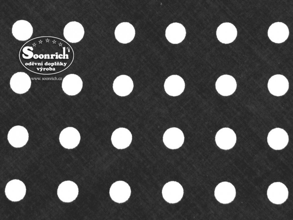 látka na patchwork bílý puntík na černé, materiál: 100% bavlna, rozměr: 100 x 20 cm, vzor: puntíky 11 mm, barva: bílá, černá , Látka na patchwork je vyrobená z kvalitního 100 % bavlněného plátna. Bavlněné