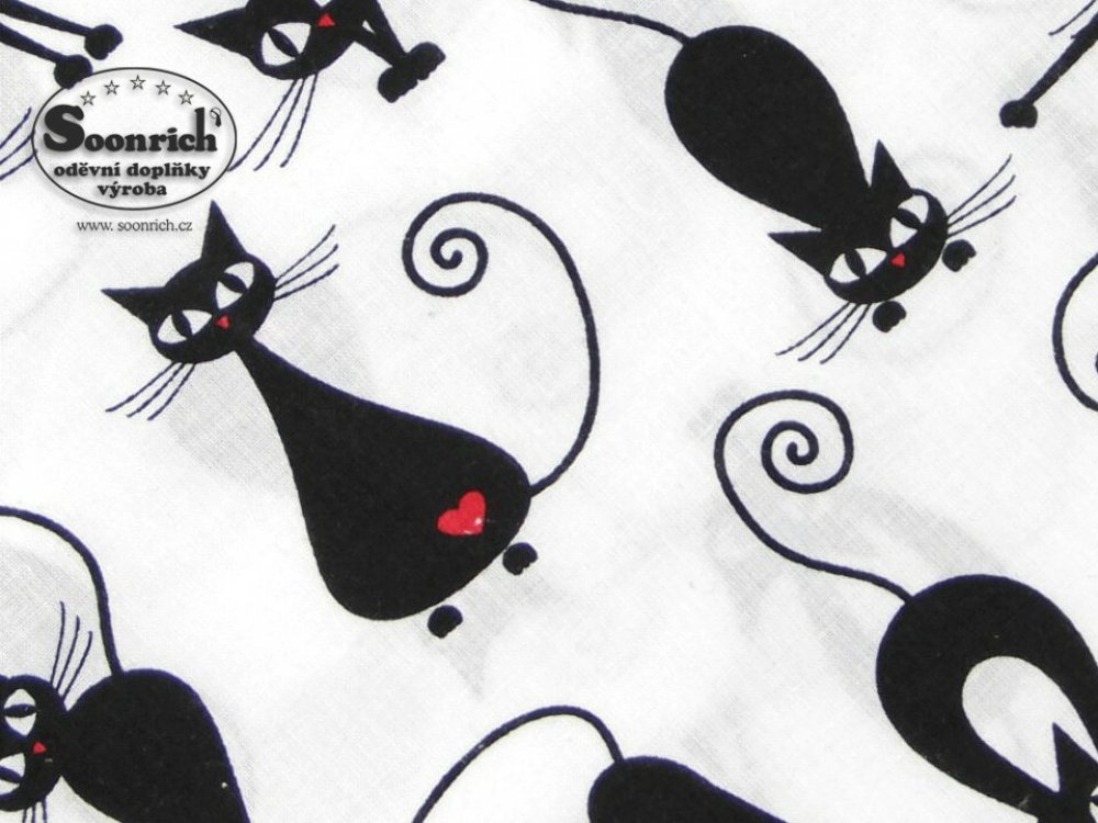 Soonrich látka na patchwork černé kočky na bílé ptw283