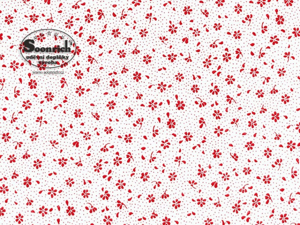 látka na patchwork červené kytky na bílé, materiál: 100% bavlna, rozměr: 100 x 20 cm, vzor: květiny, kytky, kytičky 4 mm, barva: červená, bílá , Látka na patchwork je vyrobená z kvalitního 100 % bavlněného plátna. Bavlněné