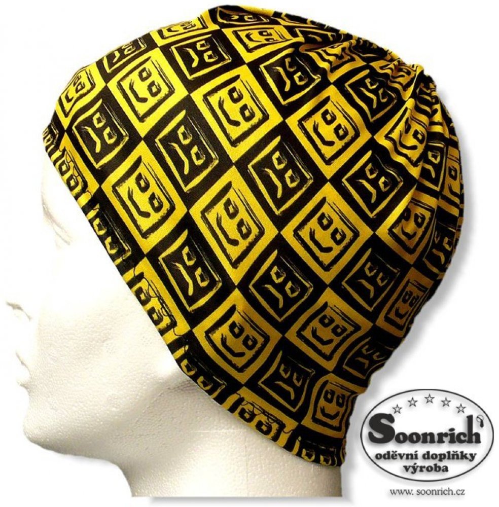 multifunkční šátek žlutý, smajlíci, materiál: 100% polyesterový úplet, rozměr: 24 x 40 cm válec, vzor: originální šachovnice 3 x 3 cm, smajlíci, barva: černá, žlutá, , Dámský a pánský multifunkční šátek je vyrobený z kvalitního úpletového materiálu. Pružný šátek je potištěn vlastním originálním vzorem, navrženým našimi designéry, a označen ochrannou známkou originality. Originální šátky se tisknou...