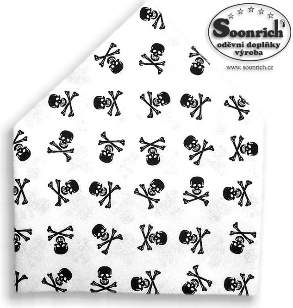 šátek dětský černé lebky, materiál: 100% bavlna, rozměr: 45 x 45 cm, vzor: lebky 20 mm barva: černá, bílá, , čtyřcípý dětský šátek z bavlněného plátna, šátek se vyrábí s potiskem různých vzorů nebo jednobarevný, šátek můžeme uvázat na hlavu přeložením do trojúhelníku, srolováním v délce 65 cm přepony se může šátek omotat 2x kolem krku a chrání před nachlazením, bavlněný šátek je vhodný doplněk pro...