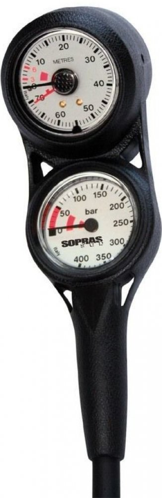 Konzola COMBO 3 MINI 400 barMalá kompaktní a elegantní měřící troj konzola obsahující tlakoměr, hloubkoměr a kompas.TlakoměrStandardní přehledný manometr o průměru 65 mm s luminiscenční stupnicí do 400 bar.HloubkoměrAnalogový hloubkoměr se stupnicí do 70 metrů.- přestavitelný ukazatel maximální hloubky.- nastavení nuly pro potápění ve vyšší nadmořské výšce a fosforeskující ciferníkKompasKlasický kompas Standard s otočnou růžicí umístěný za hloubkoměrem.- kompas Standard má luminiscenční stupnici (kružník) s průměrem 65 mm.- otočná stupnice kompasu je uložena v kapalině a okénko pro boční odečítání- otočná růžiceKonzola má dvě boční ouška na prihytenie konzoly k ostatnímu výstroji.