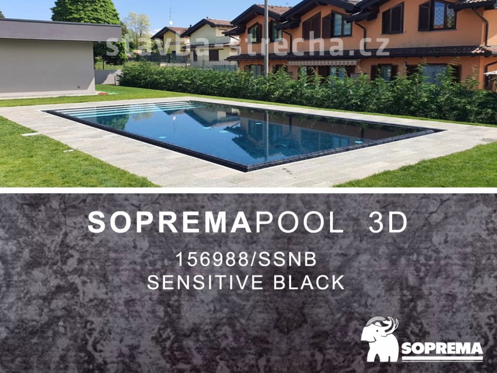 SOPREMAPOOL 3D je produktová řada fólií o tloušťce 1,8 mm, potištěných atraktivním designem s dotykem přírody, v povrchové úpravě lakováním ve všech čtyřech vrstvách fólie, což zaručuje ještě mnohem vyšší ochranu proti UV záření, mikroorganismům a chlóru. Jednotlivé vrstvy tekuté PVC hmoty jsou nanášeny na výztužnou polyesterovou vložku. Ta je zásadní součástí fólie určující její vysokou odolnost proti mechanicko-fyzikálnímu namáhání. Nová, plastická protiskluzová textura na povrchu fólie maximálně zvyšuje bezpečnost při používání bazénu.