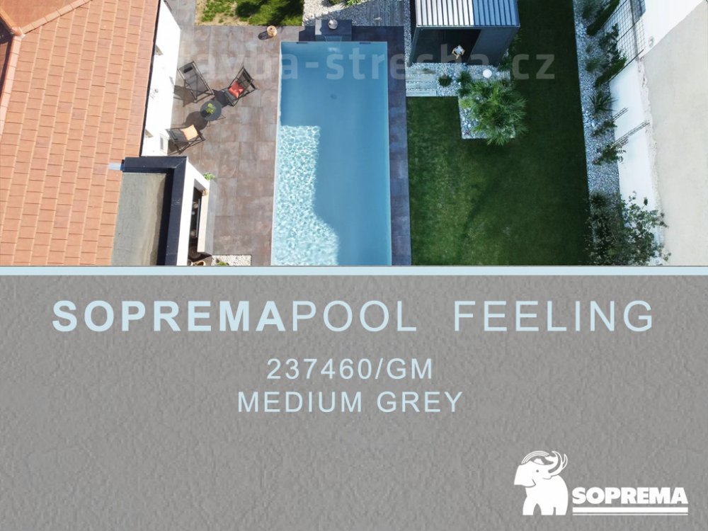 SOPREMAPOOL FEELING je produktová řada jednobarevných fólií o tloušťce 1,5 mm, v povrchové úpravě lakováním ve všech čtyřech vrstvách fólie, což zaručuje ještě mnohem vyšší ochranu proti UV záření, mikroorganismům a chlóru. Jednotlivé vrstvy tekuté PVC hmoty jsou nanášeny na výztužnou polyesterovou vložku. Ta je zásadní součástí fólie určující její vysokou odolnost proti mechanicko-fyzikálnímu namáhání. Nová, plastická protiskluzová textura na povrchu fólie dle EN 15836 maximálně zvyšuje bezpečnost při používání bazénu.