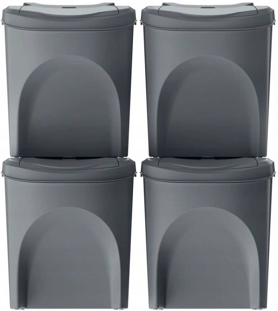 Sada čtyř plastových košů na tříděný odpad vám usnadní jeho třídění. Pro přehlednost je možné na víka košů nalepit štítek k různými symboly: plast, kov, papír, sklo, biologicky odbouratelné atd. Objem jednoho koše je 25 litrů. Vytvarovaná víka zajistí stabilitu při stohování košů.Každé balení odpadkových košů obsahuje sadu barevných nálepek s označením pro snadnější rozlišení tříděného odpadu.