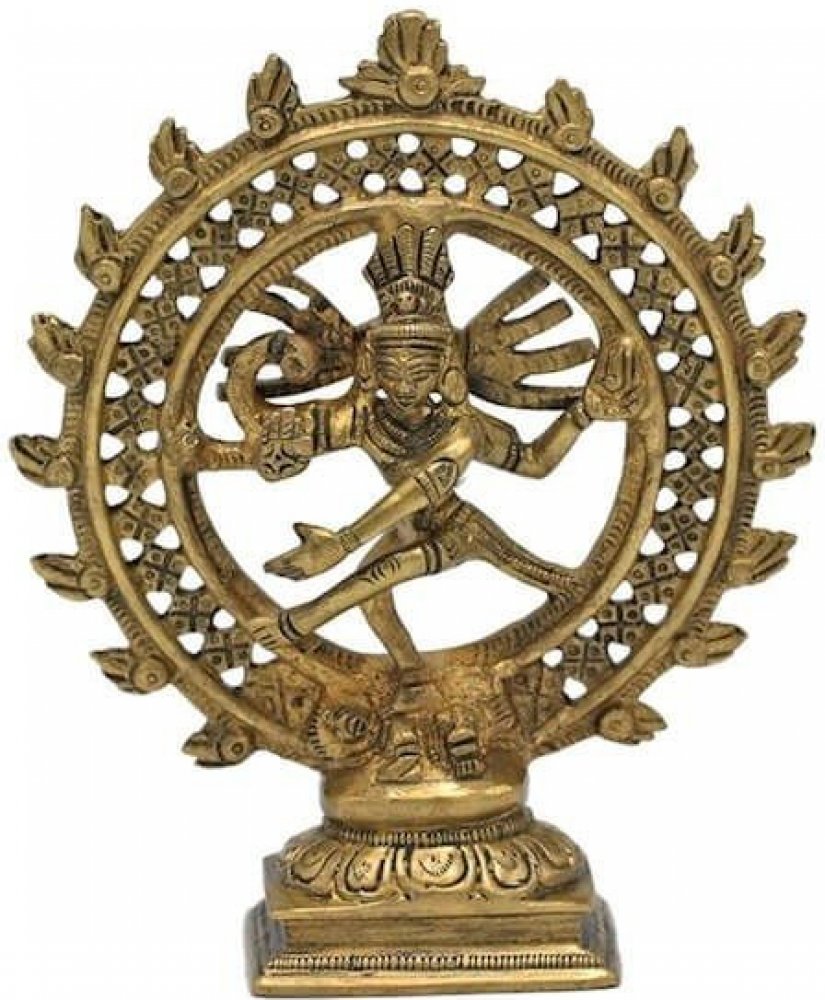Soška Shiva 15 cm. Kosmický tanec Šivy je považován za symbol stále se pohybujícího vesmíru. Shiva je většinou obklopen aurou plamenů, které nabízí ochranu proti všem rušivým vnějším vlivům, ale znamená to, že i oheň zničí staré, takže je vytvořen prostor pro nové, symbolizující věčný cyklus existence. V pravé ruce drží malý buben, obraz rytmu stvoření. Jeho mantra je OM, původní zvuk, ze kterého vzešlo celé stvoření světa. V druhé ruce drží pochodeň nebo plamen, jako symbol ničení a obnovy. Levá paže směrem dolů, symbolizuje pokoru. Materiál: mosaz Velikost: 15cm