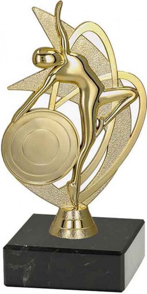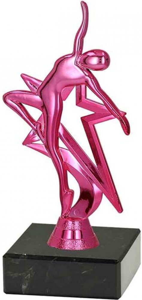 Soška GYMNASTIKA/TANEC v povrchu růžová lesk, výška s mramorem 17cm. podstavec mramor 50x30mm. Štítek s maximální velikostí 45x27mm. Soška bez emblému.
