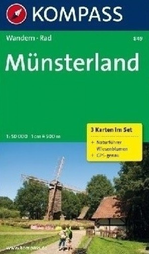 Soubor tří turistických map od vydavatelství Kompass zobrazuje německou oblast Münsterland. Oblíbené turistické mapy pro německy mluvící země. V mapách naleznete turistické, cykloturistické pásové značení doplněné o číslo, způsob značení a typ cesty, dále pak stezky pro jízdu na koni. Pro mapy je charakteristické velké množství symbolických znaků pro turisticky významné prvky a objekty (památky, ubytování, outdoorové aktivity, topografické prvky), výškopis pomocí vrstevnic po 10 m. Souřadnice pro GPS v systému UTM WGS 84. Zobrazené území: JV - Lippstadt, JZ - Wesel, Z - Bocholt, SZ - Hengelo, SV - Ossnabrück, V - Gütersloh. Vydání 2012.