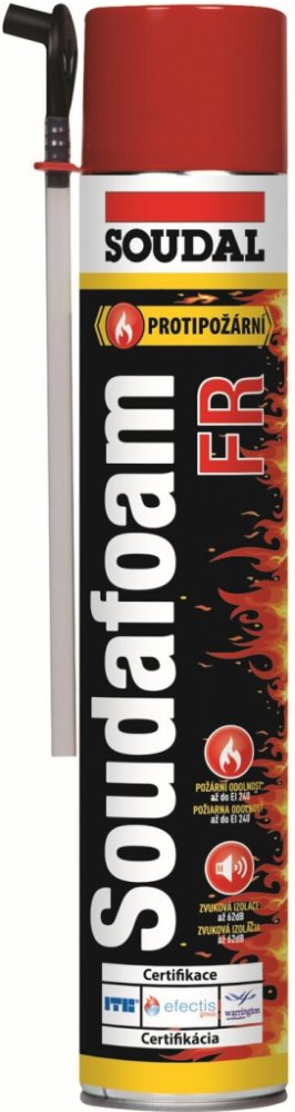 Soudal SOUDAFOAM FR HY je jednosložková rozpínavá PU montážní trubičková pěna určena k vyplnění připojovacích spár kolem rámů oken a dveří splňující požadavek na požární odolnost těsnění spojů. Protipožární polyuretanová pěna je ideálním řešením zamezující průniku kouře a zplodin mezi stavebními příčkami nebo podlahami a stropy. Slouží i k utěsnění otvorů a dutin ve střešní konstrukci, vytváření zvukově izolačních clon s požární odolností, k utěsňování kabelových a potrubních prostupů a k lepení protipožárních izolačních materiálů.
