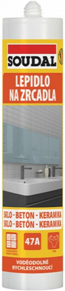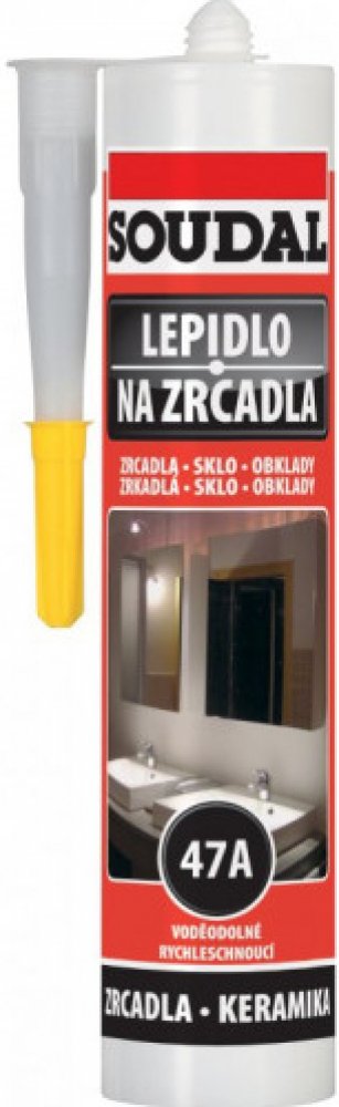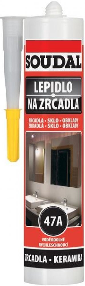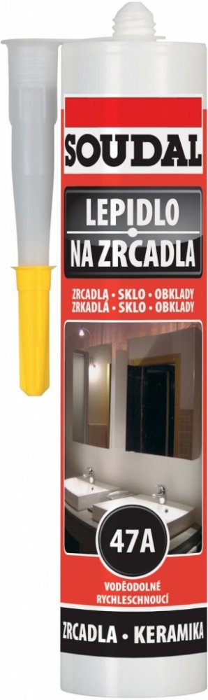 Soudal 47A lepidlo na zrcadlo 300 ml Vodovzdorné montážní lepidlo na zdrcadlo pro lepení zrcadel nebo skleněných prvků na běžné stavební povrchy mimo PE, PP a PTFE. Má výbornou přilnavost na většinu materiálů, nevyžaduje zvláštní přípravu podkladu, nenarušuje reflexní vrstvu zrcadel. Lepidlo na zrcadlo charakteristika: velmi snadná aplikace nenarušuje zadní stěnu zrcadel vytváří pevný a trvanlivý spoj velmi dobrá přilnavost ke většině materiálů Příklady použití lepidla na zrcadlo: Lepení zrcadel, skleněných a keramických obkladových prvků, polystyrenových i jiných izolačních panelů na běžné porézní stavební povrchy jako zdivo, omítka, obklady, dřevo, sádrokarton, dřevotříska apod. Technická data lepidla na zrcadlo: Báze syntetický kaučuk Konzistence pasta Systém vytvrzování fyzikální vysychání a krystalizace Otevřený čas (20 °C/65 % r. v.) max. 15 min. Specifická hmotnost 1,23 g/ml Teplotní odolnost -20 °C až +60 °C Aplikační teplota +5 °C až +30 °C Vhodné povrchy: Podklady: všechny obvyklé povrchy mimo PE, PP, PTFE a bitumenové povrchy. Jeden z povrchů by měl být savý pro odvětrání rozpouštědla obsaženého v lepidle. Stav povrchu: čistý, suchý bez prachu a mastnoty Vždy doporučujeme provést předběžný test kompatibility. Pracovní postup: Nanášení: aplikační pistolí. Povrch musí být čistý, suchý, bez prachu a mastnoty. Odřízněte špičku a aplikační pistolí naneste na zadní stranu zrcadla svislé pruhy lepidla ve vzdálenosti cca 5 cm od sebe. Zrcadlo rovnoměrně přitlačte na podklad a ihned opět odtrhněte. Lepidlo obtištěné na obou plochách nechte 15 minut zavadnout. Po té zrcadlo přiložte na místo a důkladně přitlačte po celé ploše. U větších zrcadel doporučujeme nanést lepidlo stěrkou celoplošně a velmi těžká zrcadla zafixovat na 24 hodin proti případnému posunu. Použité nářadí očistěte acetonem nebo ředidlem. Pracovní teplota: +5 °C až +30 °C Bezpečnost: Dodržujte běžné podmínky hygieny a bezpečnosti práce. Další pokyny viz.etiketa a bezpečnostní list výrobku. Doporučení: Díky široké škále typů zrcadel důrazně doporučujeme provést předběžný test kompatibility. Zrcadlo musí být zafixováno až do doby úplného vytvrzení lepidla. Doba fixace závisí na váze a velikosti zrcadla, vrstvě aplikovaného tmelu a okolních podmínkách (teplota, vlhkost). K lepení zrcadel na nesavý podklad použijte lepidla řady SOUDAL Fix ALL.
