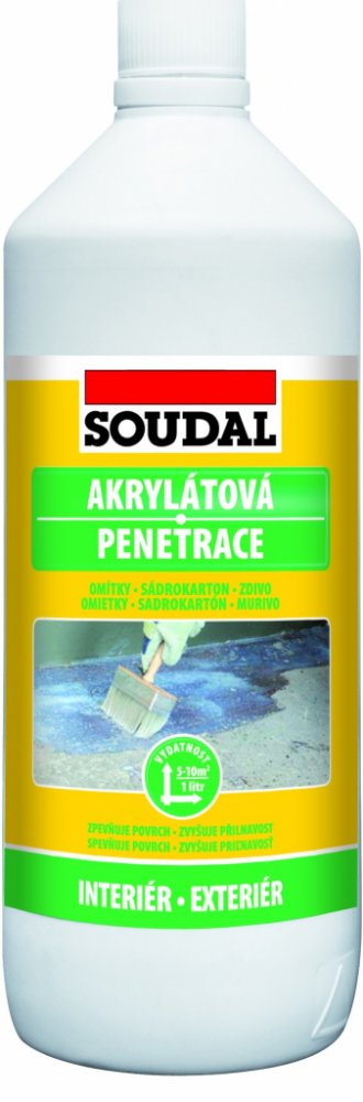Speciální systémový penetrační nátěr určený pro zvýšení soudržnosti podkladu, omezení a sjednocení jeho savosti před nanášením malířských barev a hydroizolačních stěrek SOUDAL. Je vhodná pro exteriér i interiér, snižuje spotřebu krycí nátěrové hmoty.
