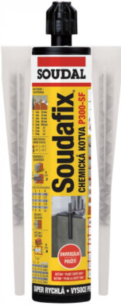 Montážní elastické lepidlo Soudafix P300SF pro pevné lepení a těsnění různých materiálů. Soudafix P300SF je jednosložkové, trvale elastické montážní lepidlo na bázi MS polymeru, které je určeno pro kotvení závitových tyčí (ETA: M8 - M24), závitových pouzder, armovacích tyčí, různých kovových profilů apod. bez působení tlaku na okolní materiál. Díky své vysoké přilnavosti pevně drží na různých podkladech včetně betonu, kamene, keramiky, kovů a dřeva, a to bez nutnosti předúpravy povrchu. Lepidlo se vyznačuje vynikající odolností vůči povětrnostním vlivům, UV záření a stárnutí, takže je vhodné pro použití jak v interiéru, tak i exteriéru. Po vytvrzení vytváří trvale pružné spoje, které dobře snášejí dilatační pohyby a vibrace, což zajišťuje dlouhodobou stabilitu a pevnost spojů.