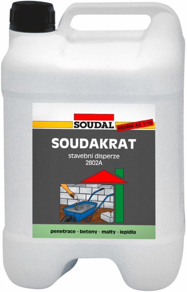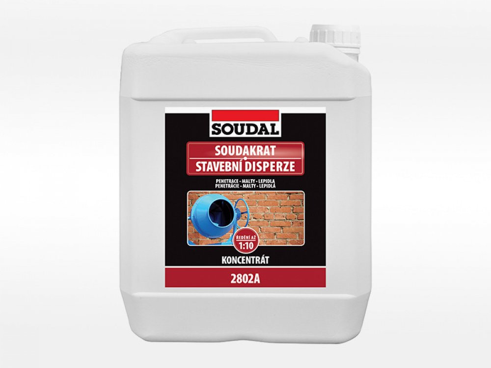 Stavební disperze SOUDAL Soudakrat koncentrát 2802A. Disperze SOUDAL Soudakrat je vysoce kvalitní koncentrát určený pro zlepšení vlastností betonů, omítek a ostatních cementových a vápenocementových směsí.