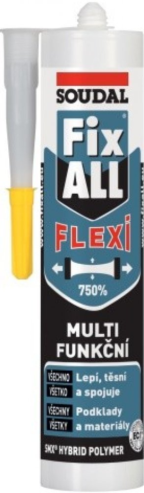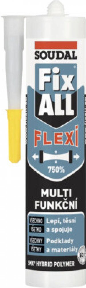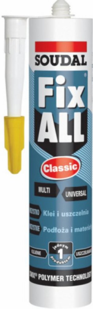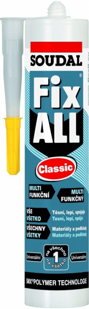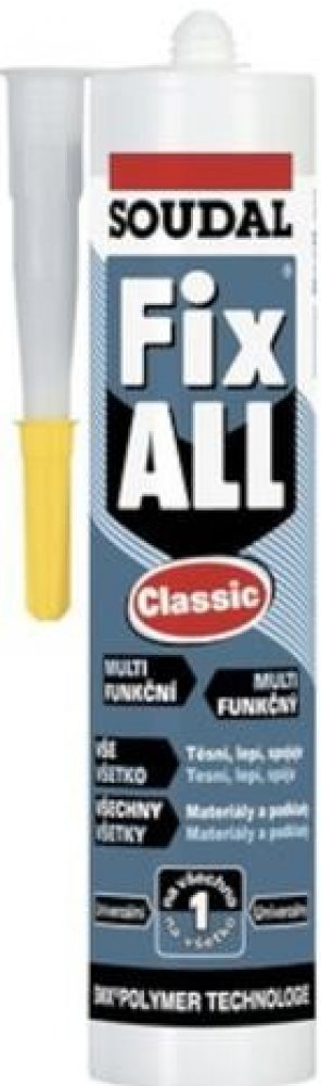 Univerzální lepící tmel známé a léty prověřené firmy SOUDAL, který je vytvrzován pohlcováním vzdušné vlhkosti.