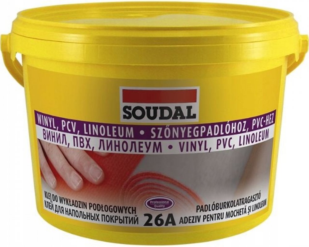 Lepidlo na koberce 26 A od Soudal je flexibilní lepidlo připravené k použití ve formě pasty. Nachází použití při lepení všech druhů podlahových krytin, jako jsou kobercové krytiny na textilní spodní straně nebo vyrobené z pěny, vinylové krytiny, linolea a PVC. Vyznačuje se vysokou svařovací silou a dlouhou otevřenou dobou, která umožňuje velmi přesné rozložení koberce. Neobsahuje škodlivé chemikálie a nevyzařuje nepříjemné pachy. Při použití lepidla na koberce 26 A značky Soudal je třeba mít na paměti, že alespoň jeden ze spojovaných materiálů musí být porézní. Celková doba schnutí je přibližně 12 hodin.