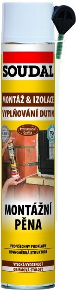 Vysoce kvalitní jednosložková polyuretanová montážní pěna připravená k okamžitému použití s trubičkovým aplikátorem. Díky použití vysoce kvalitních surovin a moderních technologií při výrobě vykazuje Montážní pěna SOUDAL vysokou vydatnost a efektivitu při aplikaci, objemovou stálost po vytvrzení a dlouhodobě plní svou funkci bez nebezpečí ztráty tepelně a zvukově izolačních vlastností spoje.