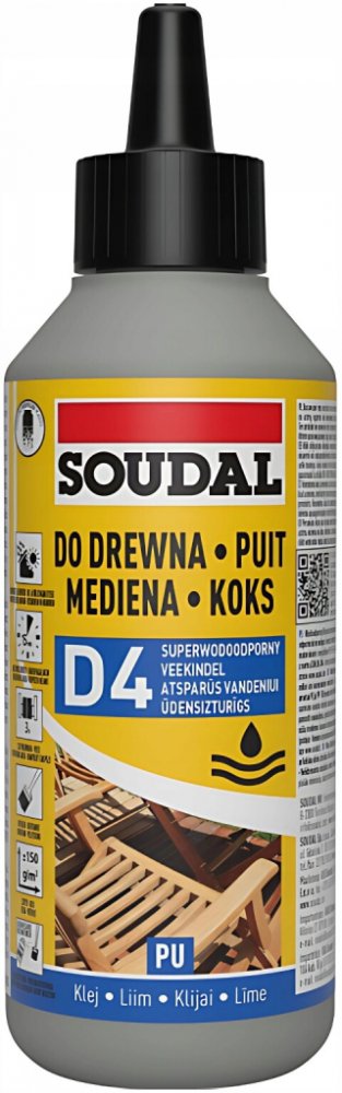 Soudal 66A je jednosložkové voděodolné polyuretanové lepidlo třídy D4 určené pro pevné a trvalé spoje dřeva a materiálů na bázi dřeva. Reaguje s vlhkostí obsaženou ve vzduchu nebo materiálu a vytváří velmi pevné a pružné spoje. Během vytvrzování se pění a vyplňuje dutiny a nerovnosti podkladu. Vynikající voděodolnost (D4) umožňuje použití lepidla pro všechny venkovní truhlářské a tesařské práce.