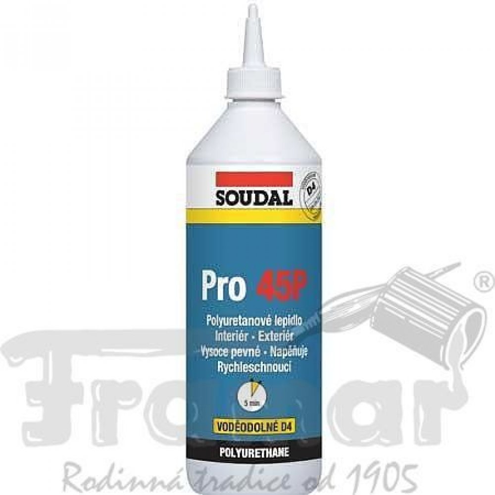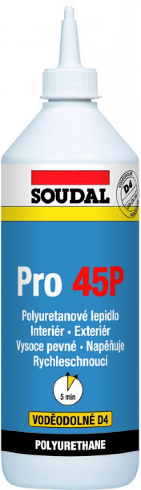 Velmi rychle schnoucí polyuretanové lepidlo s velmi vysokou lepicí silou a vynikající vodovzdorností. Vhodné pro lepení všech typů dřevěných výrobků včetně těch z tvrdých a exotických dřevin. Lze použít i na vlhké dřevo. PU lepidlo PRO 45P Velmi rychle schnoucí polyuretanové lepidlo s velmi vysokou lepicí silou a vynikající vodovzdorností D4 (ČSN EN 204). V průběhu vytvrzování napěňuje, doba stlačení lepených částí je 30 minut. Vhodné pro konstrukční lepení všech typů dřevěných výrobků včetně těch z tvrdých a exotických dřevin. Lze použít i na vlhké dřevo. CHARAKTERISTIKA PRODUKTU rychle schnoucí polyuretanové lepidlo v průběhu vytvrzování napěňuje, výborné vyplňovací schopnosti vodovzdornost (D 4 - ČSN EN 204) lze použít na vlhké dřevo PŘÍKLADY POUŽITÍ interiérové aplikace s častým krátkodobým působením tekoucí vody nebo kondenzované vody na lepidlo exteriérové aplikace vystaveny působení povětrnosti výroba okenních a dveřních rámů, u nichž se předpokládá expozice vlhkostí (exteriér), že musí být konstruovány ve třídě vodovzdornosti D4 dle EN 204 konstrukční lepení všech typů dřevěných výrobků včetně těch z tvrdých a exotických dřevin PRACOVNÍ POSTUP Pracovní postup naleznete v technickém listu