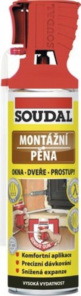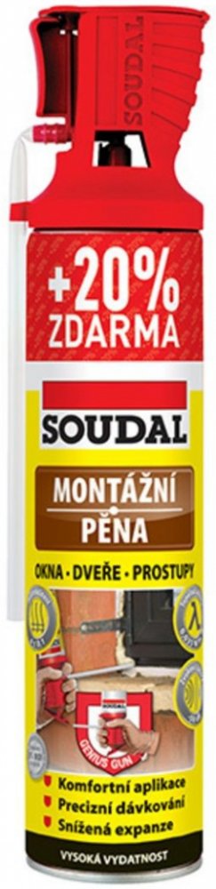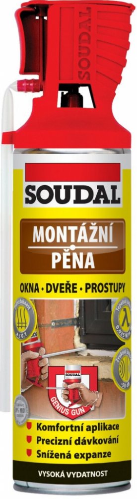 Jednosložková montážní pěna SOUDAL určena k okamžitému použití. Pro montáž oken a dveří. Montážní pěna SOUDAL Genius Gun 500 ml je jednosložková rozpínavá montážní pěna určena k okamžitému použití prostřednictvím trubičkového aplikátoru, který umožňuje precizní a snadné nanášení pěny včetně možnosti kdykoli práci přerušit a náplň tak spotřebovat po částech s časovým odstupem bez nebezpečí zalepení...