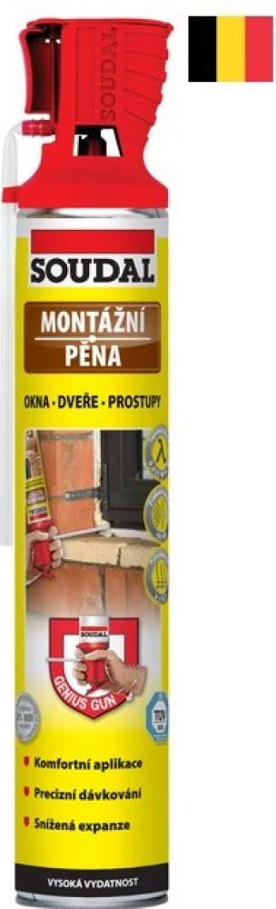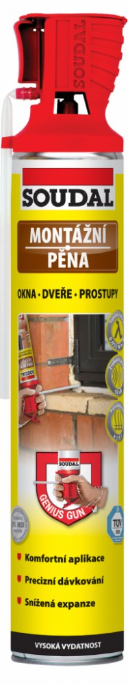 * Montážní pěna díky patentovanému aplikátoru GENIUS GUN umožňuje precizní a snadné nanášení pěny včetně možnosti kdykoli práci přerušit a náplň tak spotřebovat po částech s časovým odstupem bez nebezpečí zalepení ventilu.