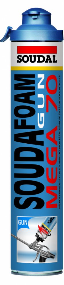 Profesionální montážní pěna se speciální recepturou a zvýšeným obsahem náplně. Trvalá vodotěsnost a vzduchotěsnost, zajišťuje parotěsnou zábranu z interiéru a paropropustnou z exteriéru. Rychletuhnoucí, nízkoexpanzní, atd. Soudafoam Gun MEGA Profesionální montážní pěna se speciální recepturou a zvýšeným obsahem náplně. Garantuje vysoce kvalitní a efektivní ošetření připojovací spáry při montáži výplní stavebních otvorů. Součást SOUDAL WINDOW SYSTEM. SWS splňuje požadavky ČSN 74 6077 na trvalou vodotěsnost a vzduchotěsnost, zajišťuje parotěsnou zábranu z interiéru a paropropustnou z exteriéru. Bez obsahu CFC (nepoškozuje ozónovou vrstvu). Zvýšená objemová vydatnost, rychletuhnoucí, nízkoexpanzní, výborná přilnavost na PVC, dřevo, hliník i většinu ostatních stavebních materiálů (mimo PP, PE, PTFE), po vytvrzení objemově stálá, vynikající tepelně a zvukově izolační vlastnosti, umožňuje přesné dávkování a efektivní využití s minimálním ořezem. Verze CLICK je vybavena unikátním bajonetovým systémem upínání na pistoli CLICK&FIX. CHARAKTERISTIKA PRODUKTU vynikající přilnavost na většinu materiálů výborné tepelné a akustické izolační vlastnosti určena k profesionálnímu využití vynikající objemová stabilita po vytvrzení PŘÍKLADY POUŽITÍ profesionální instalace okenních a dveřních rámů tmelení a vyplňování otvorů v konstrukci střech montáž a tmelení rámů oken a dveří zlepšení tepelně izolačních vlastností chladicích systémů PRACOVNÍ POSTUP Pracovní postup naleznete v technickém listu