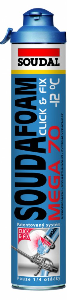 Profesionální montážní pěna se speciální recepturou a zvýšeným obsahem náplně. Vhodná pro montáž při nízkých teplotách (od ‑12 °C). Garantuje vysoce kvalitní a efektivní ošetření připojovací spáry při montáži výplní stavebních otvorů. Soudafoam Gun Mega zimní Profesionální montážní pěna se speciální recepturou a zvýšeným obsahem náplně. Vhodná pro montáž při nízkých teplotách (od ‑12 °C). Garantuje vysoce kvalitní a efektivní ošetření připojovací spáry při montáži výplní stavebních otvorů. V kombinaci s doplňkovými produkty SOUDAL WINDOW SYSTEM vyhovuje požadavkům ČSN 74 6077. Bez obsahu CFC (nepoškozuje ozónovou vrstvu). Verze CLICK je vybavena unikátním systémem upínání na pistoli CLICK&FIX. CHARAKTERISTIKA PRODUKTU vynikající přilnavost na většinu materiálů výborné tepelné a akustické izolační vlastnosti určena k profesionálnímu využití vynikající objemová stabilita po vytvrzení PŘÍKLADY POUŽITÍ profesionální instalace okenních a dveřních rámů tmelení a vyplňování otvorů v konstrukci střech montáž a tmelení rámů oken a dveří montážní práce v zimním období PRACOVNÍ POSTUP Pracovní postup naleznete v technickém listu