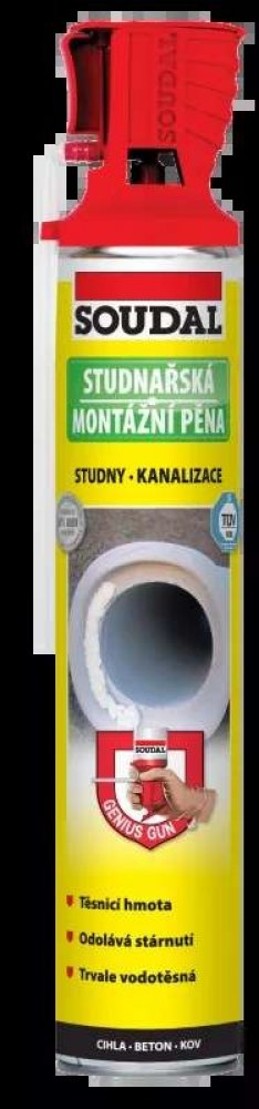 Montážní pěna PUR SOUDAL studnařská GG DIY. Studnařská pěna SOUDAL je speciální vodotěsná PUR pěna s odolností vůči trvalému působení vody a organických nečistot. Vhodná pro přímý styk s pitnou vodou.