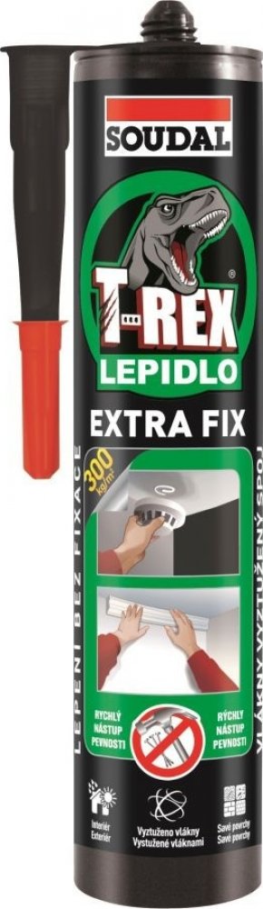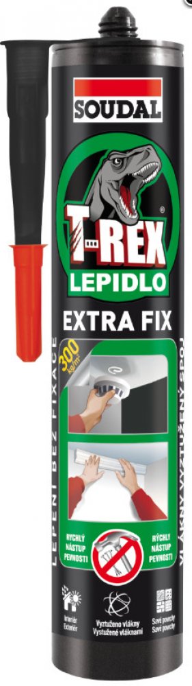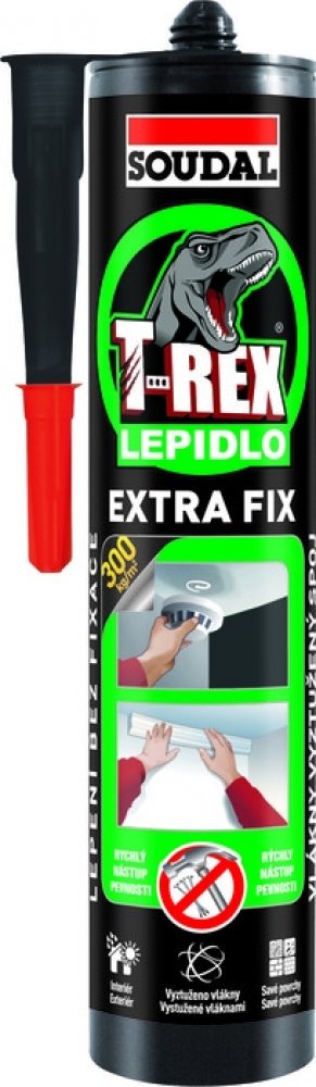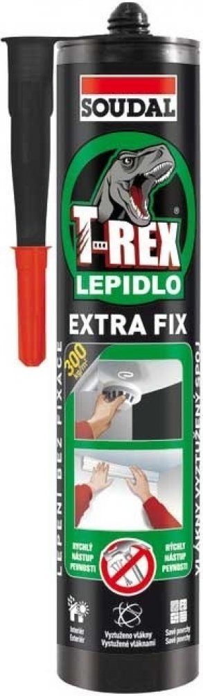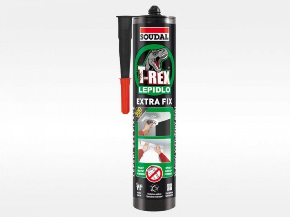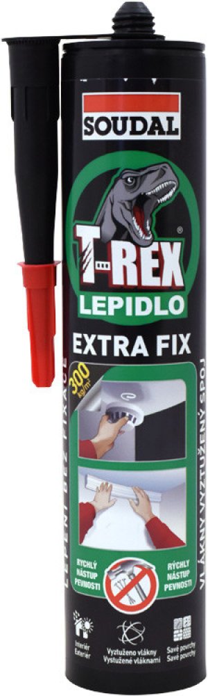 Soudal T-Rex Extra Fix je snadno použitelné montážní lepidlo s vysokou počáteční přilnavostí. Vlákny zesílená struktura lepidla zajišťuje vysokou pevnost spoje. Neobsahuje rozpouštědla, je šetrné k životnímu prostředí. Zvláště vhodné pro porézní materiály.