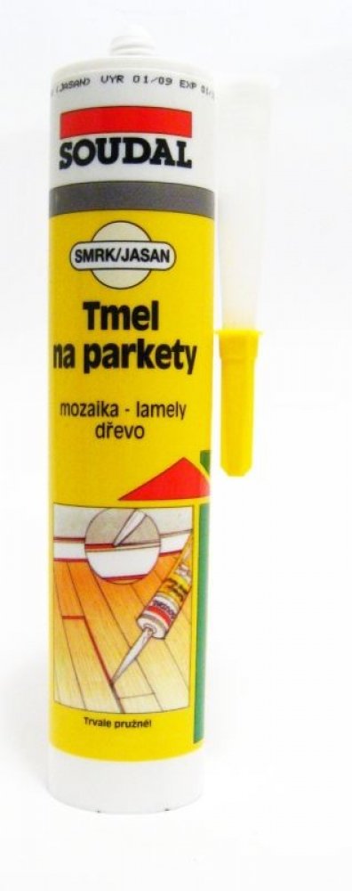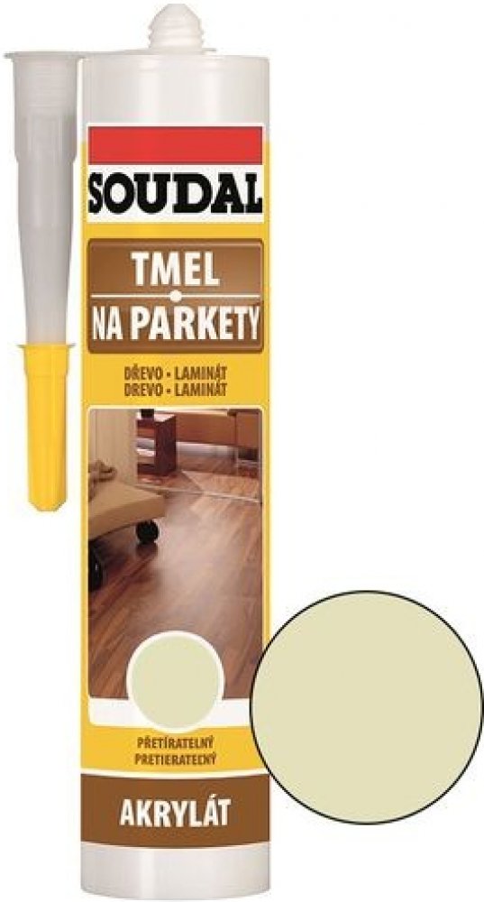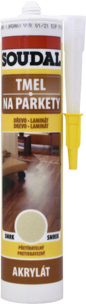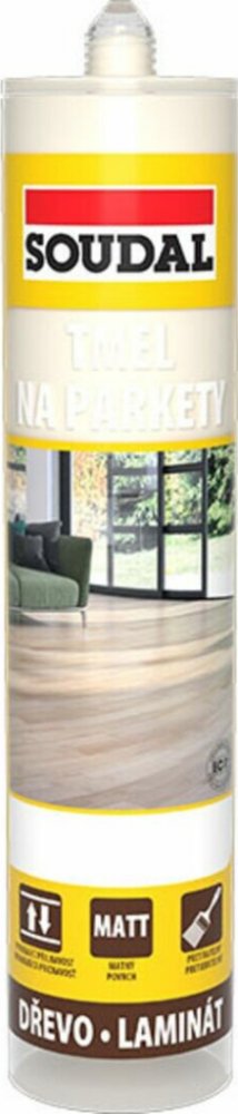 Soudal tmel na parkety a laminátové podlahy je vysoce elastický tmel imitující barvy dřeva (odstíny bříza, smrk, buk, dub, třešeň, teak). Tmel na parkety určený k tmelení spojů dřevěných i laminátových podlah a jejich doplňkových prvků. Neobsahuje rozpouštědla. Je vodotěsný a přetíratelný všemi typy barev včetně lazurovacích a podlahových laků.