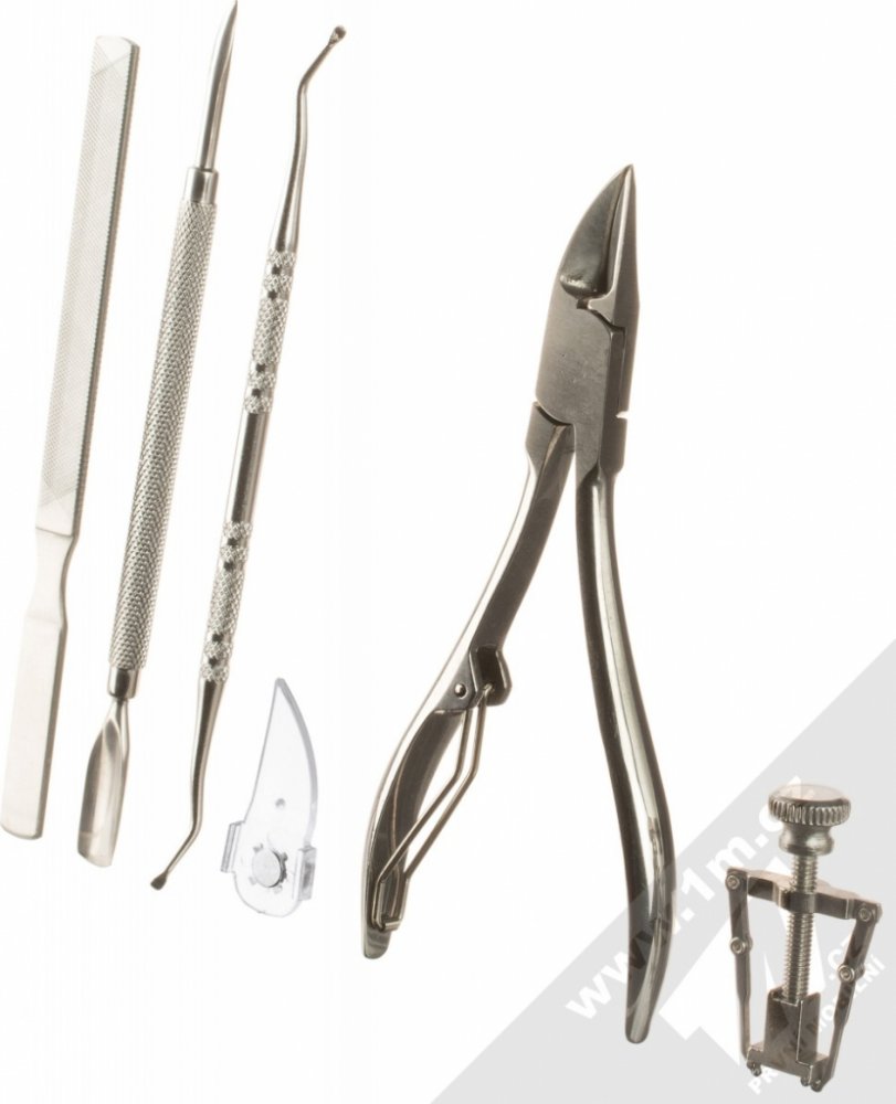 Celá sada se skládá ze 6 profesionálních nástrojů jako jsou: pilník, ochranný štít, zatlačovač kůžičky, řezák, korektor a zvedák.