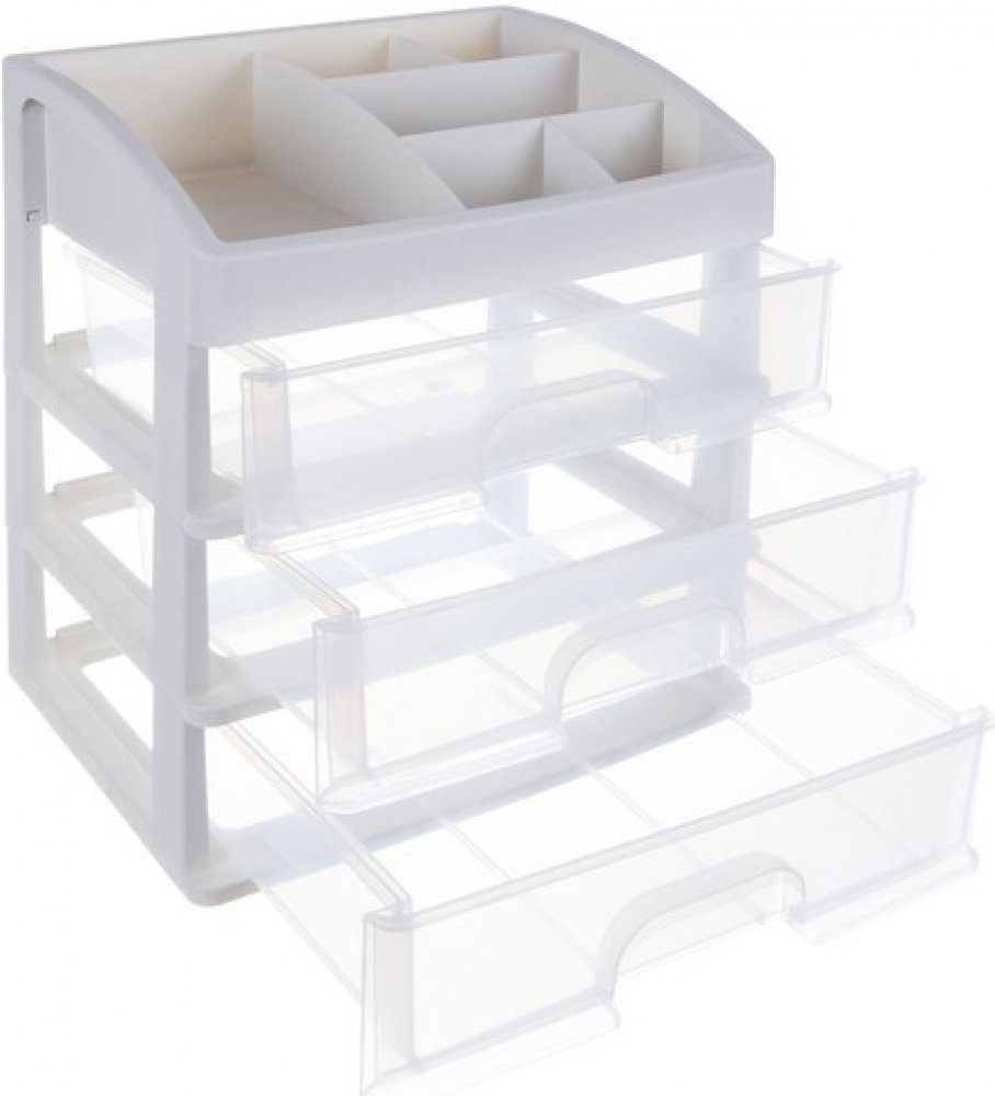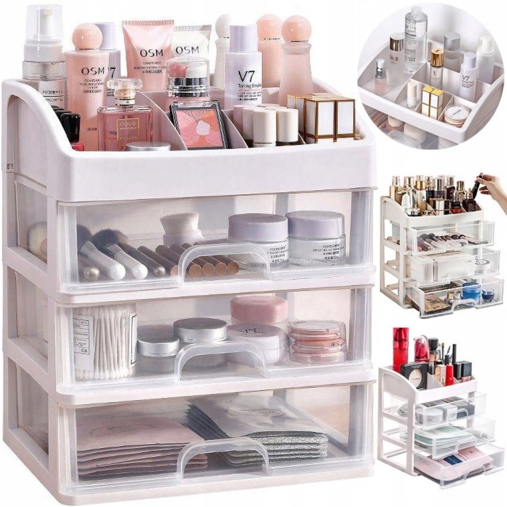 - 3 průhledné zásuvky – organizér je vyroben z průhledného materiálu, díky čemuž jasně vidíte, co je uvnitř, takže můžete rychle najít předmět, který hledáte. Má 3 průhledné zásuvky stejné velikosti.