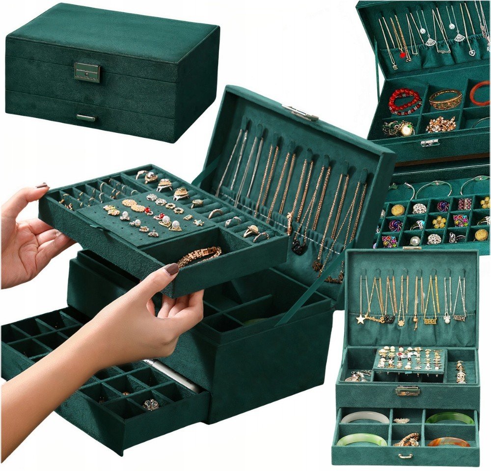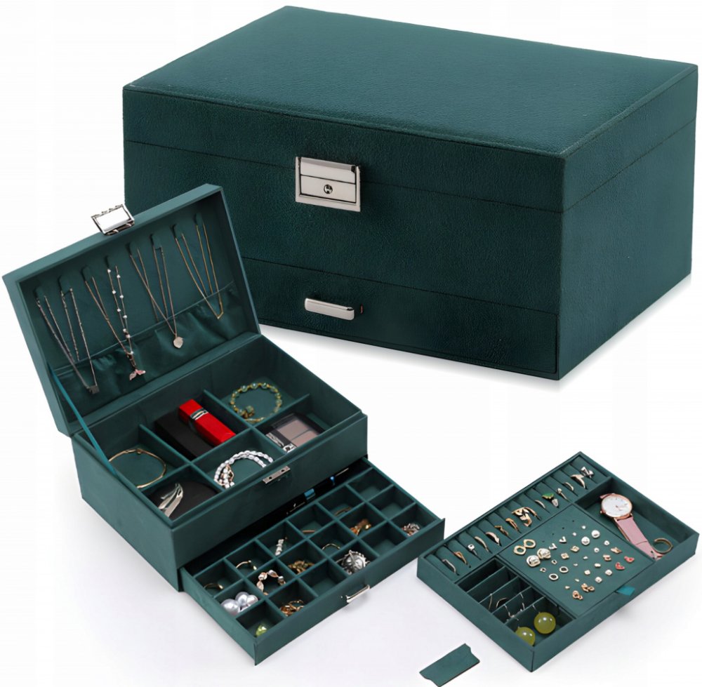 - ORGANIZACE ŠPERKŮ - šperkovnice vám umožní efektivně uspořádat vaši sbírku. Má různé velikosti přihrádek a kapes, které usnadňují skladování všech druhů šperků, jako jsou prsteny, náhrdelníky, náramky, hodinky a náušnice . Můžete tak snadno najít a vybrat ten správný šperk na nošení.
