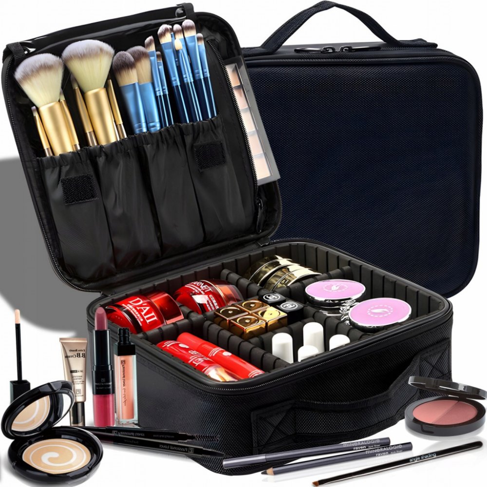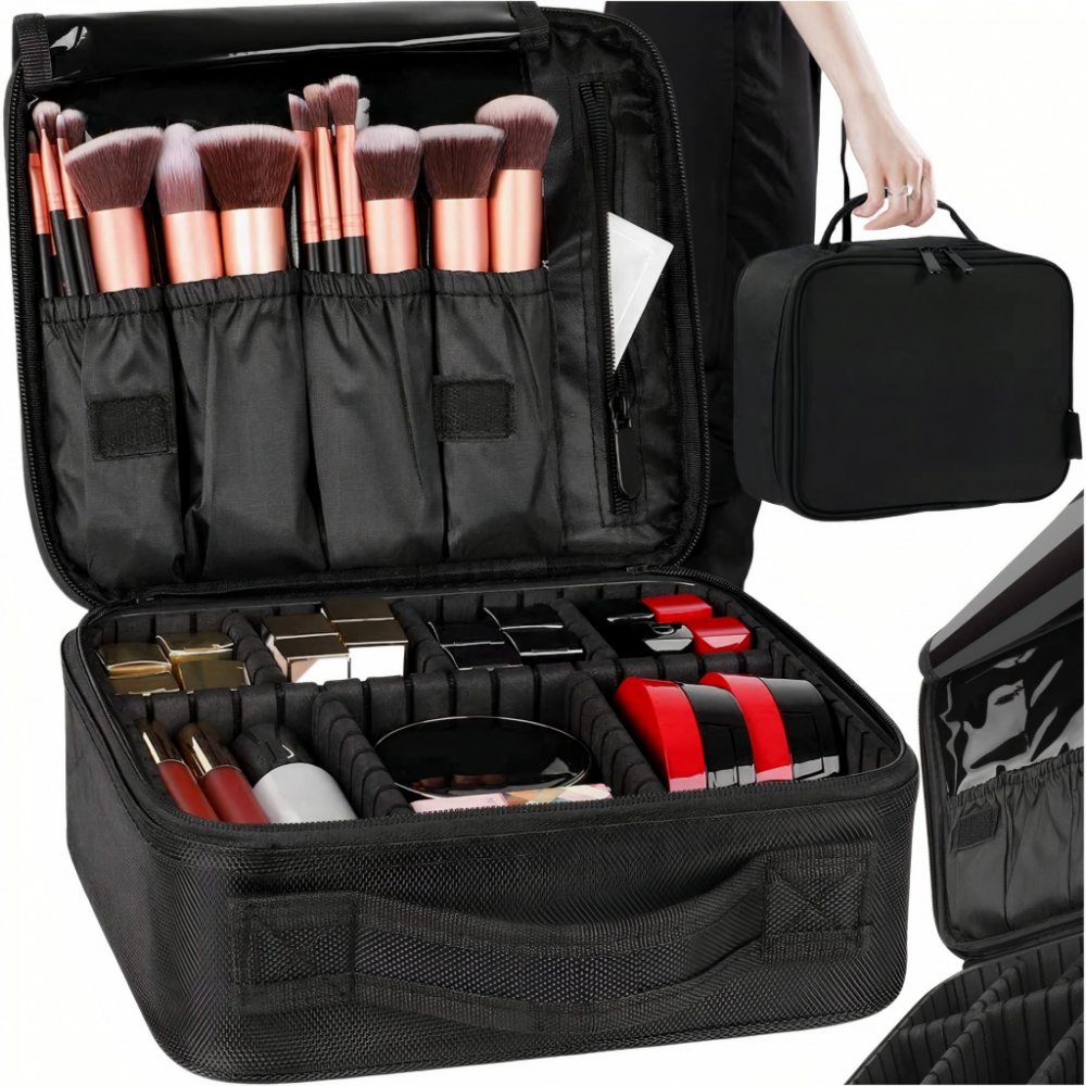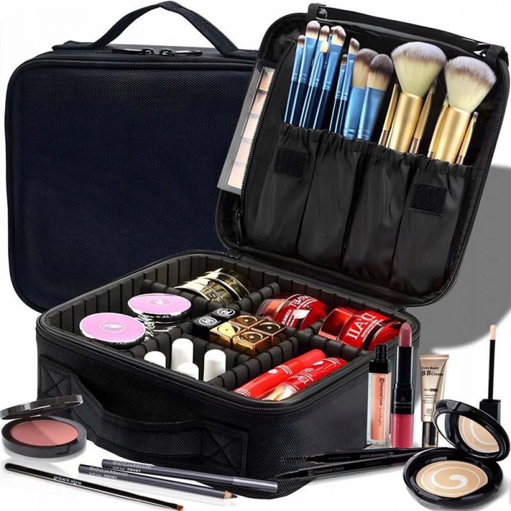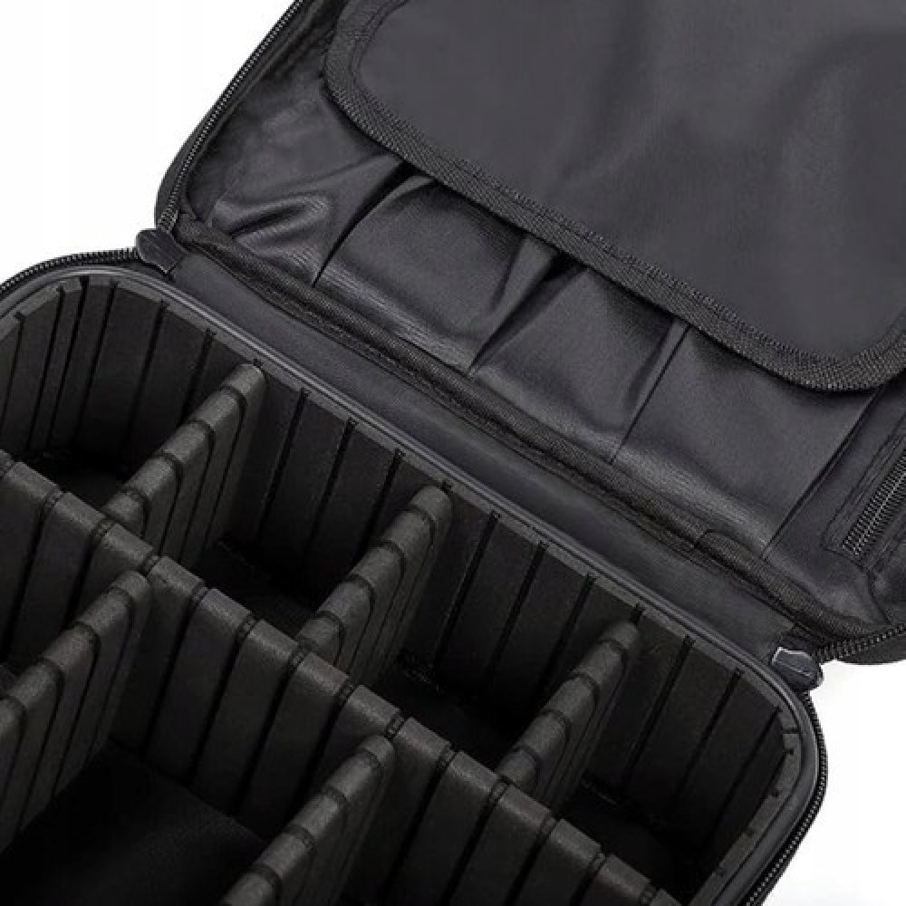- ORGANIZACE KOSMETIKY - pouzdro má různé velikosti kapes, pohyblivé přihrádky a elastické kapsy, které umožňují snadnou organizaci a oddělení kosmetiky . Jeho velká kapacita umožňuje skladovat mnoho různých kosmetických produktů na jednom místě.