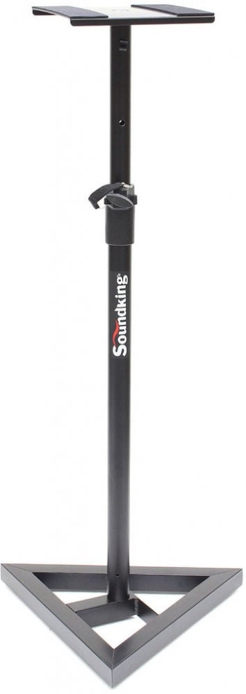 Ocelový teleskopický reproduktorový stojan se základnou a podstavcem pro studiové monitory a menší reproboxy. Nastavitelná výška v rozsahu 93-133 cm, pojistný ocelový kolík proti sesunutí. Hmotnost 5 kg, Spodní trojúhelníková základna se stranou 45 cm vrchní čtvercová pogumovaná podstava se stranou 25 x 25 cm. Černá matná úprava. Součástí balení jsou i tři šroubové špice na liminaci vibrací, přená...