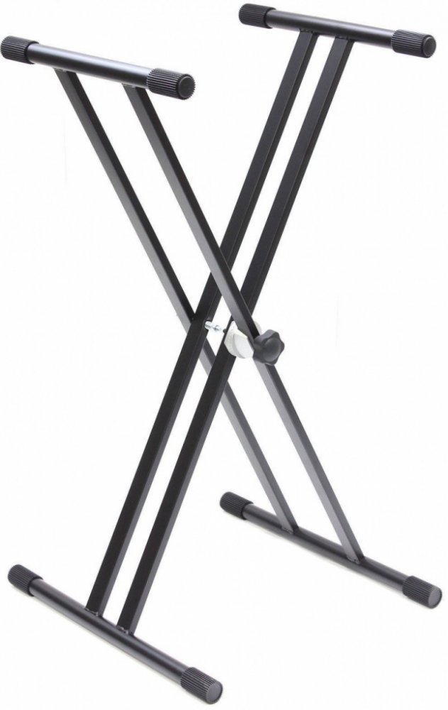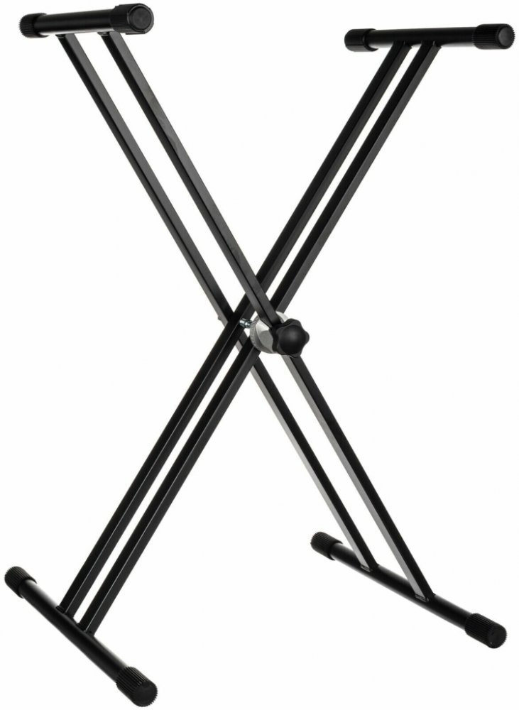 Ocelový klávesový stojan ve tvaru písmene X se zdvojenými nohami pro zvýšení nosnosti a zlepšení stability. Je vhodný pro všechny běžné keyboardy a stage piána. Výškově nastavitelný s upínacím systémem CROCODILE. Pogumované kontaktní plochy. Nastavitelná výška v rozsahu 170-970 mm, maximální zátěž 35 kg. Černá barva.