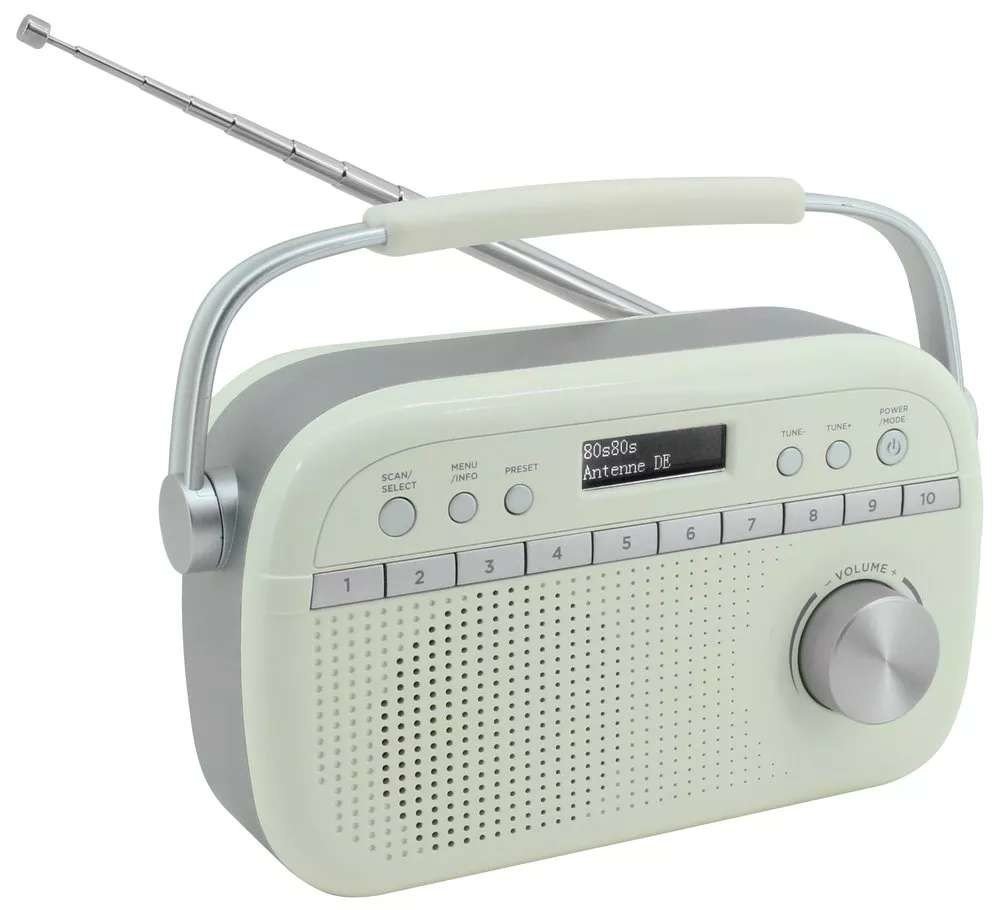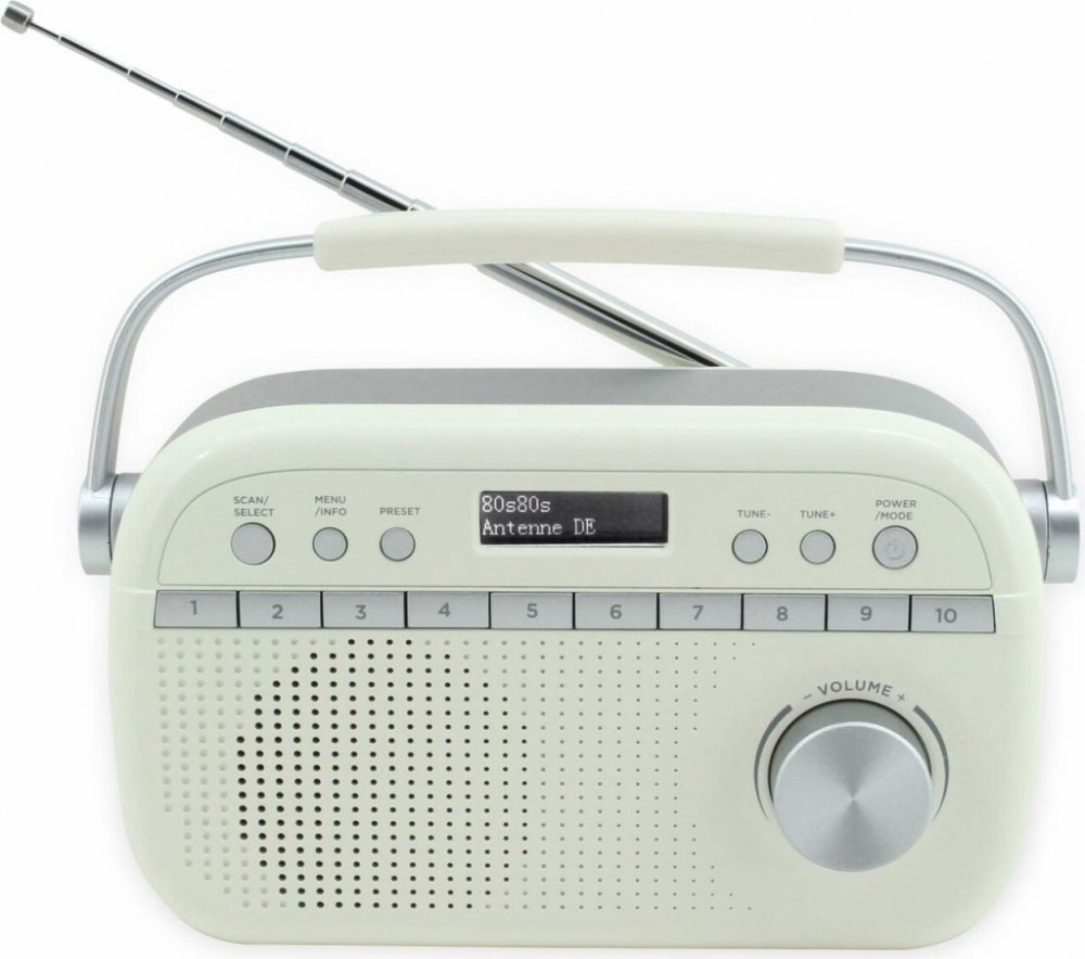 Přenosné rádio pro poslech hudby z pásma DAB+/FM-RDS. Nabízí 40 přednastavených stanic (10× tlačítko předvolby + 30 dalších přednastavených stanic). Teleskopická anténa zaručí kvalitní příjem i za nepříznivých okolností. Na displeji lze kromě sledování data a času také nastavit duální budík. Pokud si chcete užít hudbu bez rušení, jistě potěší sluchátkový výstup. Napájení rádia je možné jak z elektrické sítě, tak pomocí 3× LR14/C baterií.