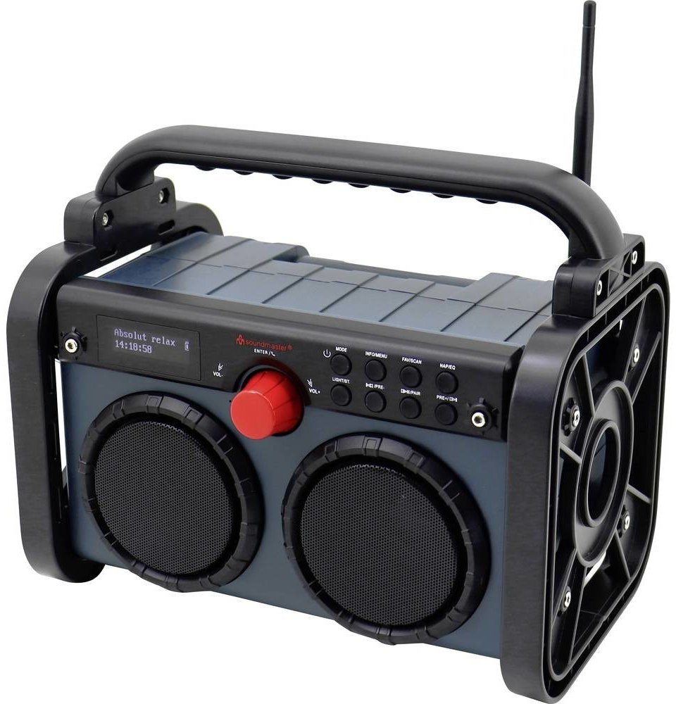 Robustní venkovní rádio vybavené moderním příjmem DAB+ rádiových stanic v kombinaci s klasickým FM tunerem. Rádio disponuje jak vstupem AUX pro drátové přehrávání, tak i bezdrátovým připojením Bluetooth pro přehrávání z chytrého telefonu, který je navíc možné schovat do vnitřní přihrádky. Samozřejmostí je voděodolnost a prachuvzdornost díky certifikaci IP44. Potěší také vestavěné LED osvětlení. O napájení se stará integrovaná baterie s kapacitou 2000 mAh, která zaručuje dlouhé hodiny nerušeného poslechu.