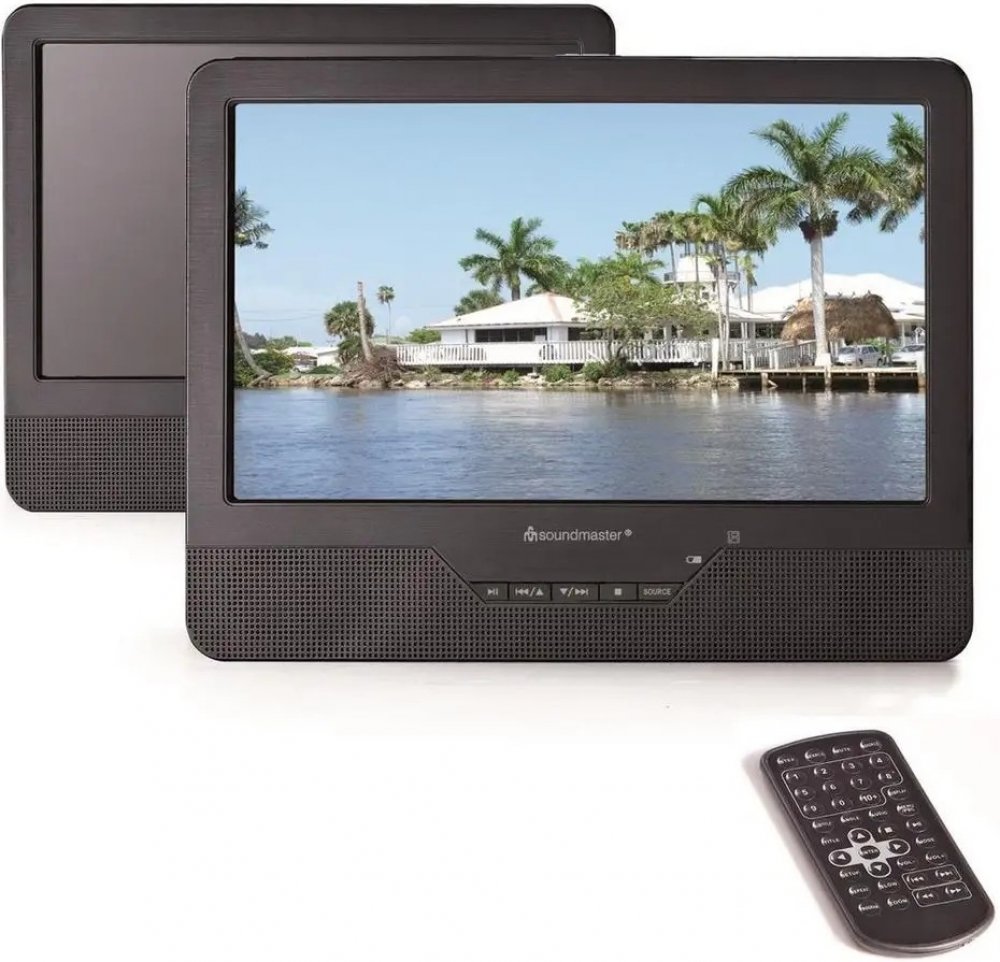 Přenosný DVD přehrávač disponuje duálním displejem o úhlopříčce 23 cm (9") s rozlišením 640×234. Čtečka SD karet, USB vstup, AV In / AV Out. Vestavěné stereo reproduktory, sluchátkový výstup. Vestavěná Li-Pol baterie s kapacitou 1200 mAh. Součástí balení je dálkové ovládání, 2× sada pro montáž na opěrku hlavy, 12V adaptér do auta, AC/DC adaptér, 2× sluchátka.