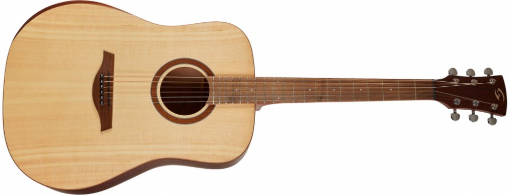 Akustická kytara Soundsation EDGE ST DN-NT je cenově dostupná akustická kytara s velkým rezontaním tělem typu Dreadnought vhodná nejen pro začínající hráče. Přední deska kytary je zhotovena z překližovaného smrku, zadní deska a luby jsou vyrobeny z překližovaného sapele. Ke krku z okoumé s příjemným “C” profilem je přilepen ořechový hmatník osazený dvaceti pražci. Struny jsou uchyceny v chromovaných die-cast ladících mechanikách a ořechové kobylce. Stylové zpracování podtrhuje finiš open pore natural satin a mahagonová lemovka a opěrka ramene.