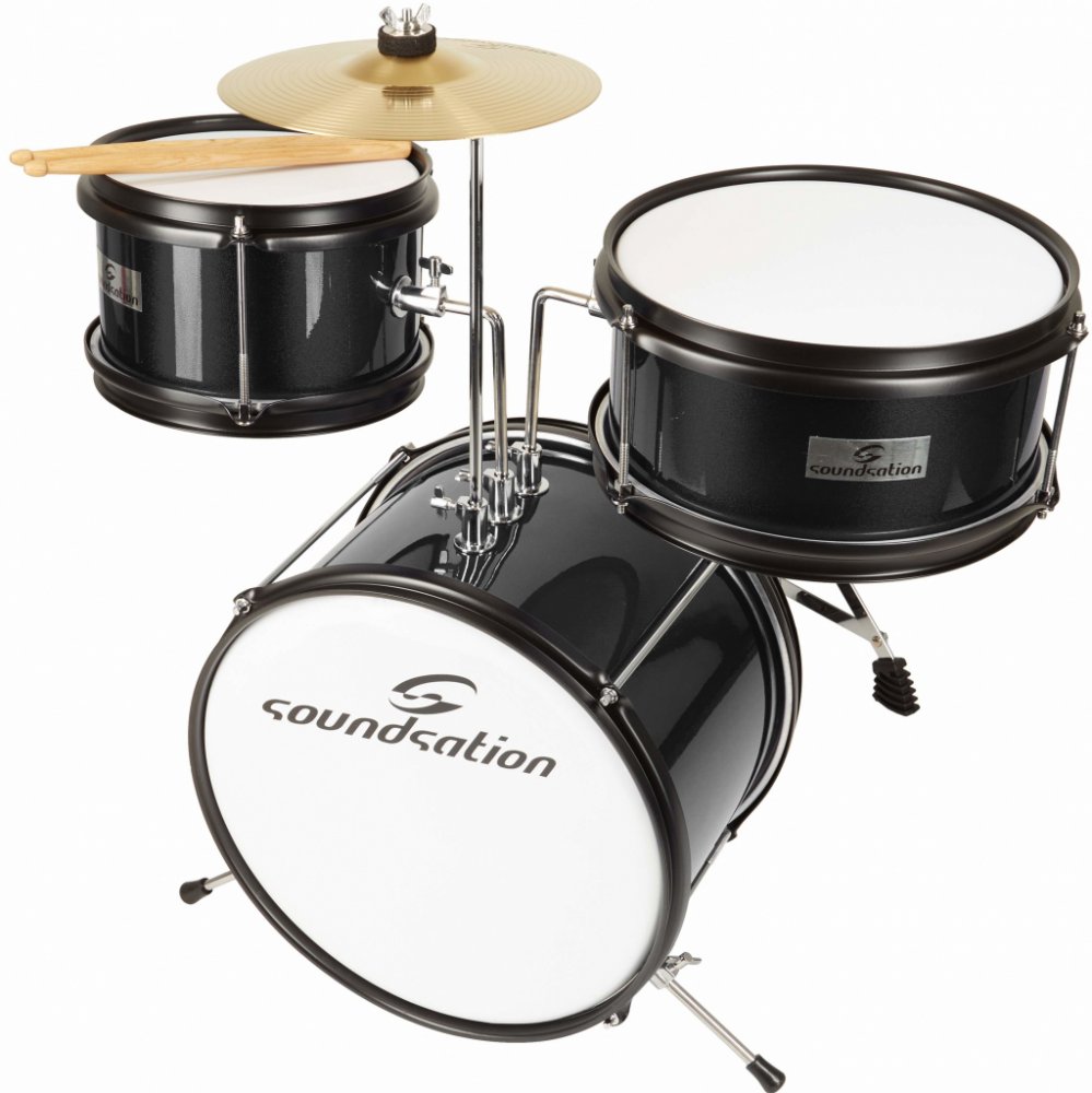 Dětská bicí souprava Bicí sada pro nejmenší bubeníky a bubenice (od 6 let) je vhodná pro všechny začínající hráče. Nyní už nemusíte vystavovat nebezpečí vaše hrnce, kbelíky a dřevěné sběračky, tato základní sada plně uspokojí potřeby všech děti a s přehledem je provede prvními kroky ve hře na tento oblíbený nástroj. Sada obsahuje tři kusy bubínků, pedál k basovému bubnu, pár paliček, činel a buben...