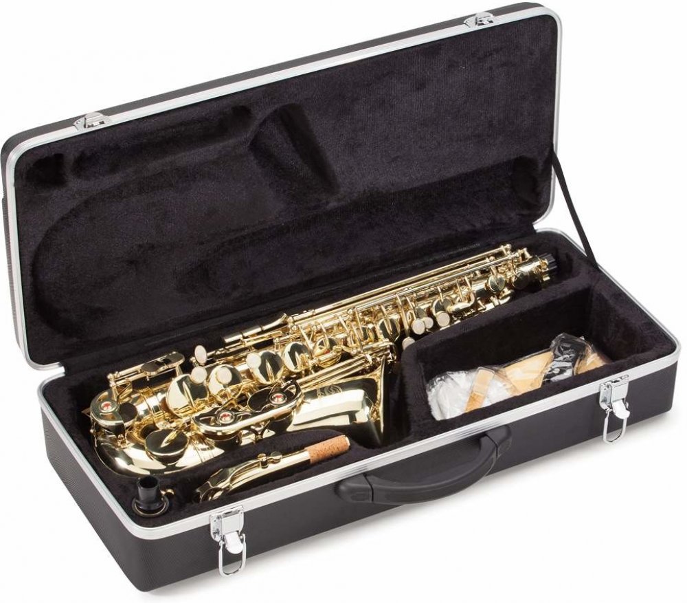 Soundsation SALSX-20 je Eb altový saxofon vhodný pro studenty hudebních škol a každého, kdo chce začít s hrou na saxofon. Mosazné tělo nástroje zdobí finiš v podobě zlatého laku. Saxofon se dále může pochlubit klapkami s vykládáním z imitace perleti (pearloid), Fis/F# klapkou a zdobnou rytinou na ozvučníku. Nástroj je dodáván v lehkém kufru z materiálu ABS spolu s hubičkou a kompletní sadou příslušenství.ParametryTyp: Altový saxofonLadění: EbTělo: MosazObsah balení: Pouzdro, rukavice, čistící látka, plátek, popruh