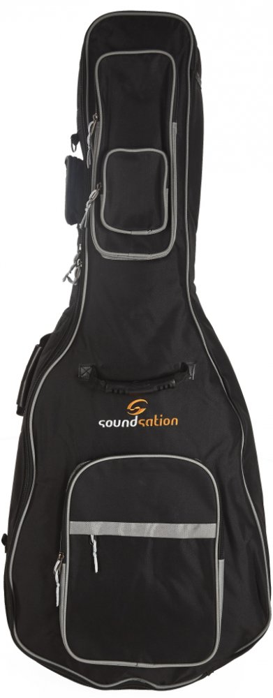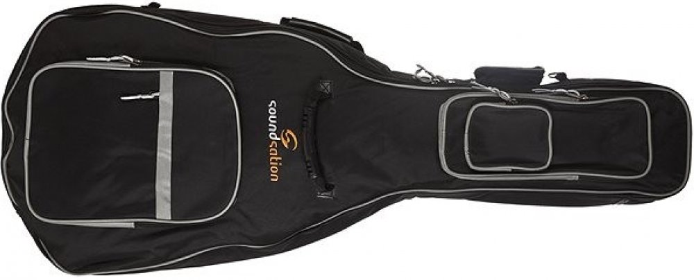Tento obal pro akustickou kytaru je vyroben z odolné textilie. Vysokou úroveň ochrany poskytuje nástroji třicet milimetrů tlustá vycpávka. Veškeré příslušenství pohodlně uložíte do tří kapes na přední straně obalu a jedné boční. Samozřejmostí jsou nastavitelné ramenní popruhy a ergonomická dvojitá rukojeť.
