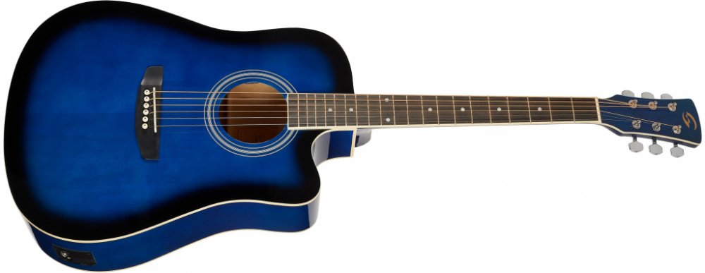 Elektroakustická kytara Akustické kytary značky Soundsation s označením Yellowstone vycházejí z tradičního westernového tvaru Dreadnought. Představují dobrou volbu prvního nástroje pro úplné začátečníky, ale i příhodného společníka na příjemně strávený letní večer s přáteli. Přední deska elektroakustické kytary YELLOWSTONE-DNCE-BLS je zhotovena z překližovaného smrku, zadní deska a luby jsou vyrobeny z překližované lípy. Hmatník z blackwoodu je osazen dvaceti pražci, orientaci na hmatníku usnadňují poziční tečky. Struny jsou uchyceny v chromovaných die-cast ladících mechanikách a kobylce z blackwoodu. Stylové zpracování podtrhuje obvodová lemovka těla, krku a hmatníku, finiš blue burst a černý pickguard. Možnost ozvučení nabízí aktivní elektronika E-2T s dvoupásmovým ekvalizérem a zabudovanou ladičkou. Maximální flexibilitu zaručují XLR a jack 6,3 mm výstupy z kytary.