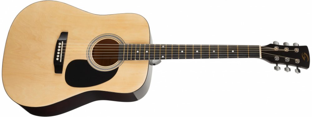 Vrstvený korpus tohoto nástroje je zhotoven z překližované lípy. Plochu javorového hmatníku rozděluje dvacet pražců a poziční tečky, které začátečníkům především usnadní orientaci po ploše hmatníku. Struny jsou ukotveny v javorového kobylce a chromovaných Die-Cast ladících mechanikách. Design nástroje zpestřují tradiční prvky v podobě obvodové lemovky, rozety a černého pickguardu.