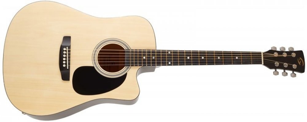 Vrstvený korpus tohoto nástroje je zhotoven z překližované lípy. Plochu javorového hmatníku rozděluje dvacet pražců a poziční tečky, které začátečníkům především usnadní orientaci po ploše hmatníku. Struny jsou ukotveny v javorového kobylce a chromovaných Die-Cast ladících mechanikách. Design nástroje zpestřují tradiční prvky v podobě obvodové lemovky, rozety a černého pickguardu.