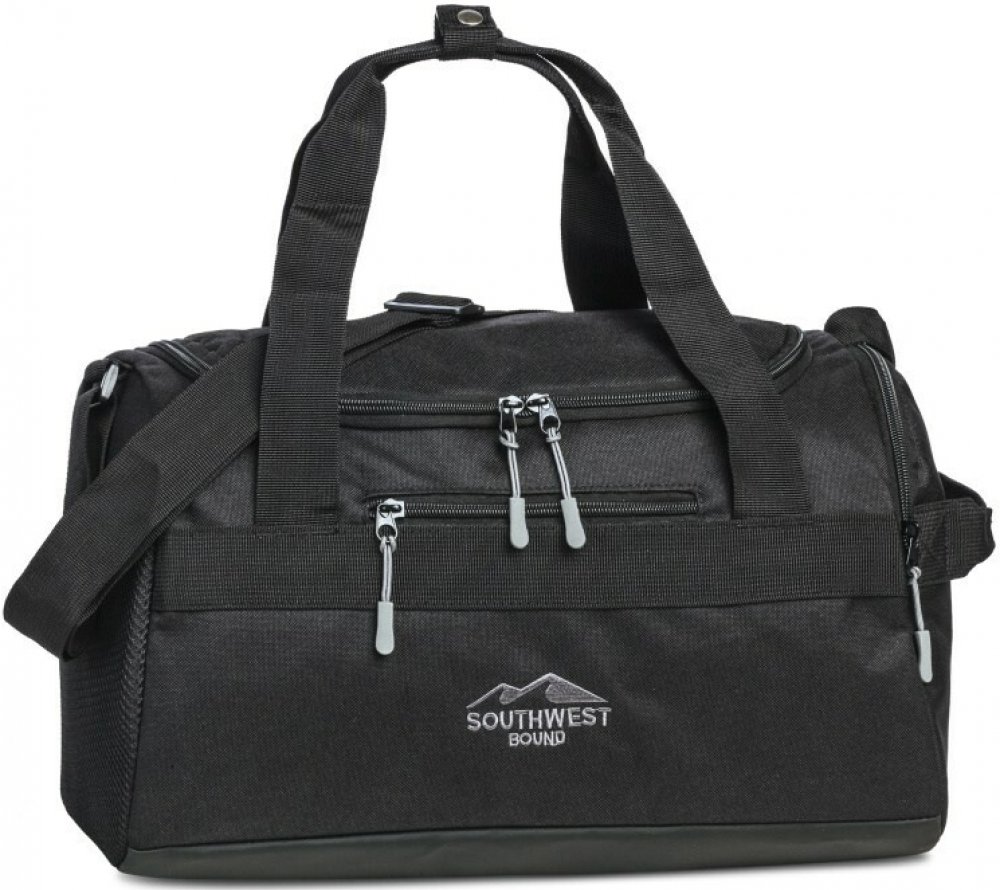 Účelná cestovní taška vhodná nejen na sport německé značky Southwest Bound v oblíbené černé barvě s doplňky v šedé barvě. Tato trendy taška se hodí i na cestování, zabalíte do ní mnoho věcí a poskytne Vám dostatek prostoru. Kombinace barev působí stylově a šik.