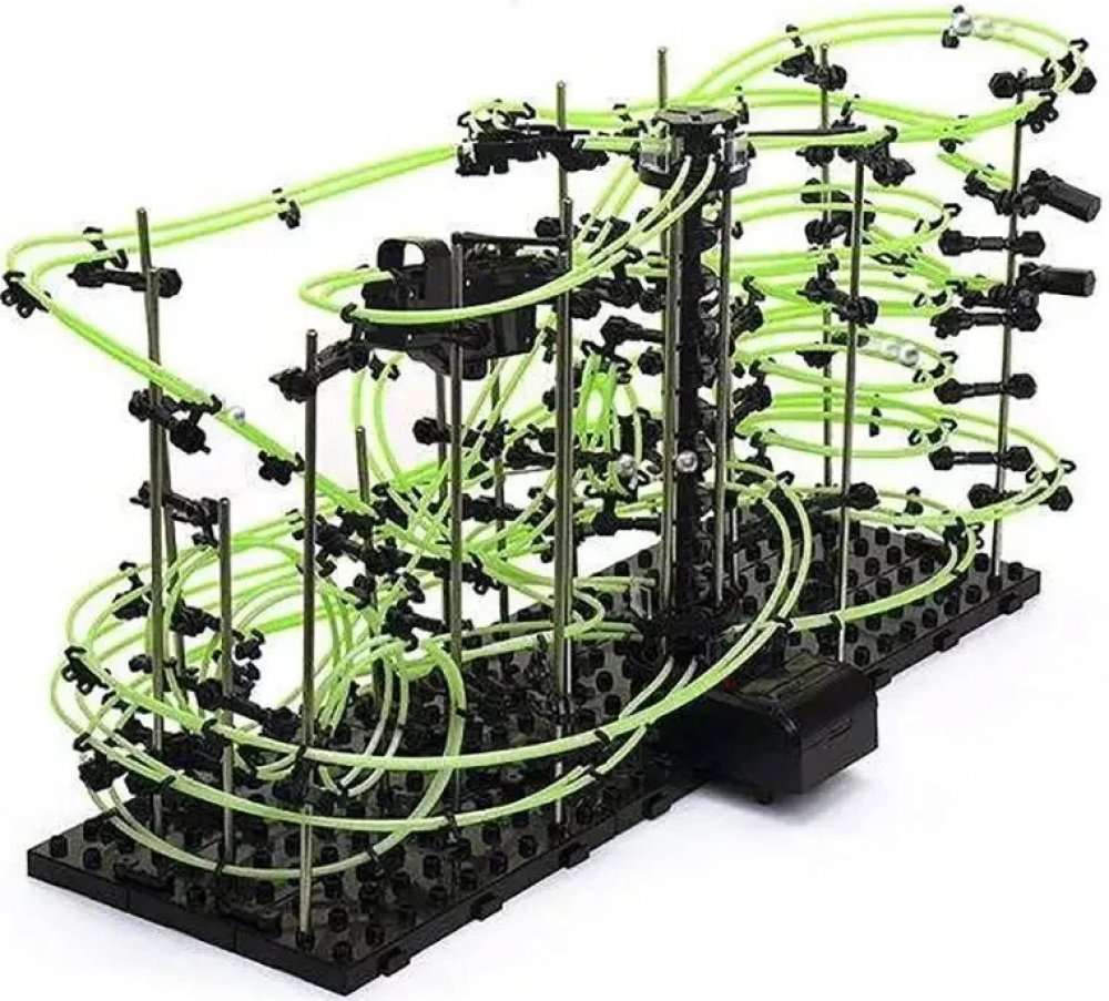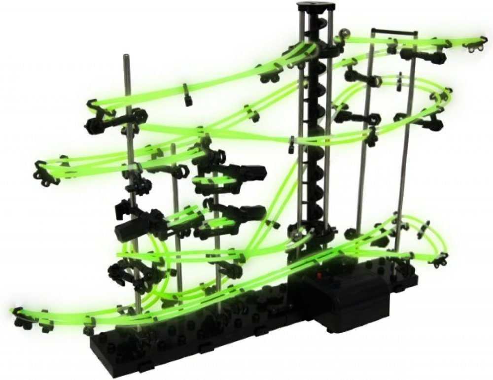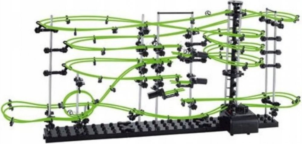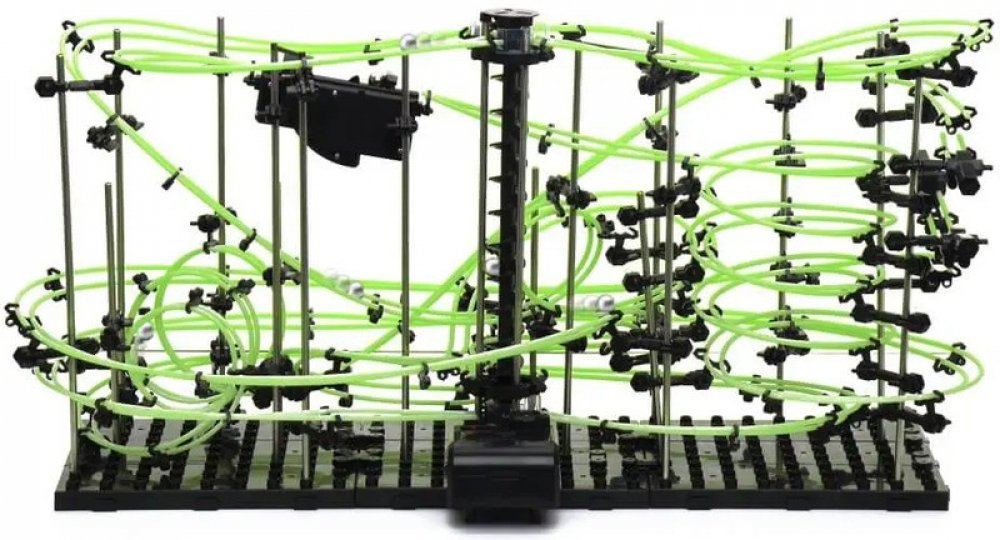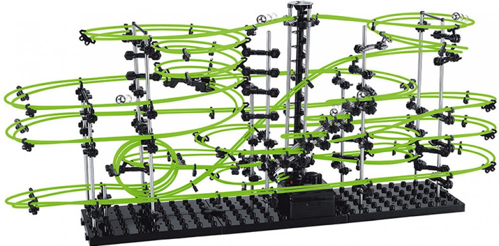 Spojením všech prvků dohromady nakonec získáte obrovskou dráhu, po které se pohybují kovové kuličky. Smyčkami projíždějí jedna za druhou, dokud se nedostanou k výtahu, který je vyveze na vrchol konstrukce, kde zábava začíná nanovo.