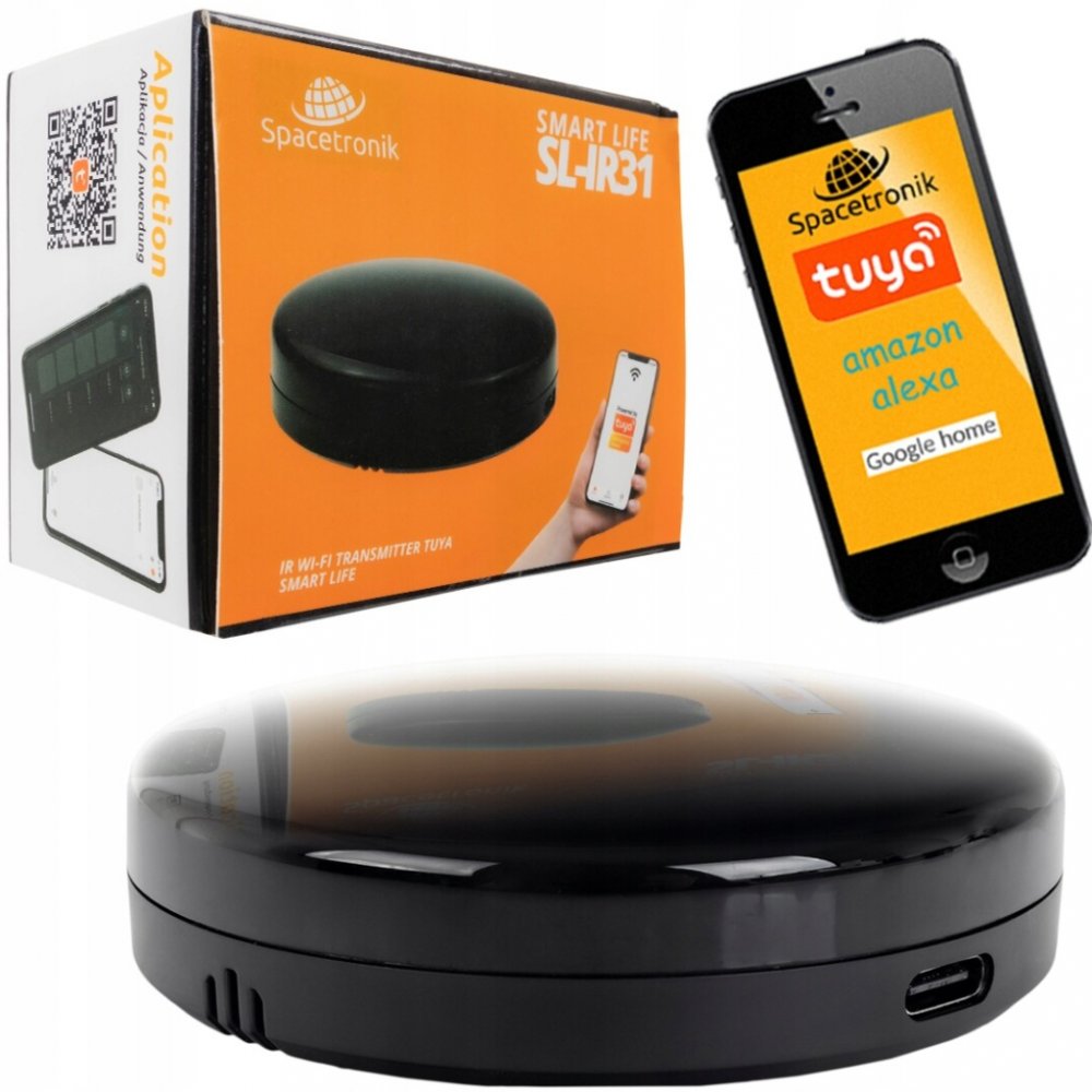 IR vysílač Spacetronik SL-IR31 je zařízení pro ovládání zařízení pomocí infračerveného a rádiového signálu 433 MHz. Podporuje správu zařízení prostřednictvím mobilní aplikace Tuya nebo Smart Life. Kompatibilní s Amazon Alexa a Google Home. Zařízení funguje v síti WiFi 2.4G, má funkci učení signálů dálkových ovladačů, databázi hotových šablon a podporu více uživatelů. Kompaktní konstrukce, dosah ovládání až 75 m, rozsah pokrytí 360°.