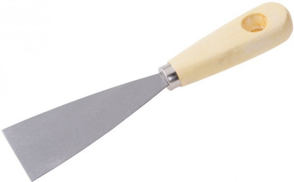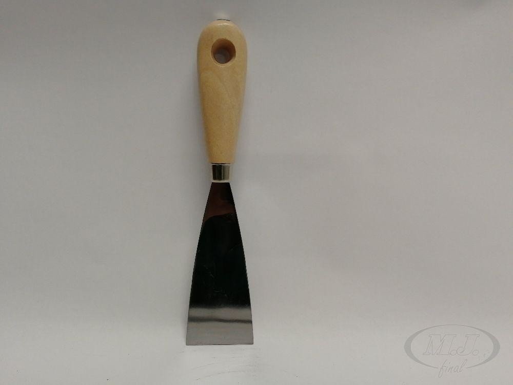 Špachtľa oceľová 50 s drevenou rúčkou. Je pracovné ručné náradie, ktorý sa používa obzvlášť v stavebníctve ale aj v domácnosti. Špachtľa, drevená rukoväť sa používa na nanášanie a roztieranie stavebné sadry, tmelov alebo na očistenie a odstránenie starých tmelov, malieb či tapiet. Vďaka trojuholníkovému tvaru sa materiál veľmi ľahko nanáša aj odstraňuje.